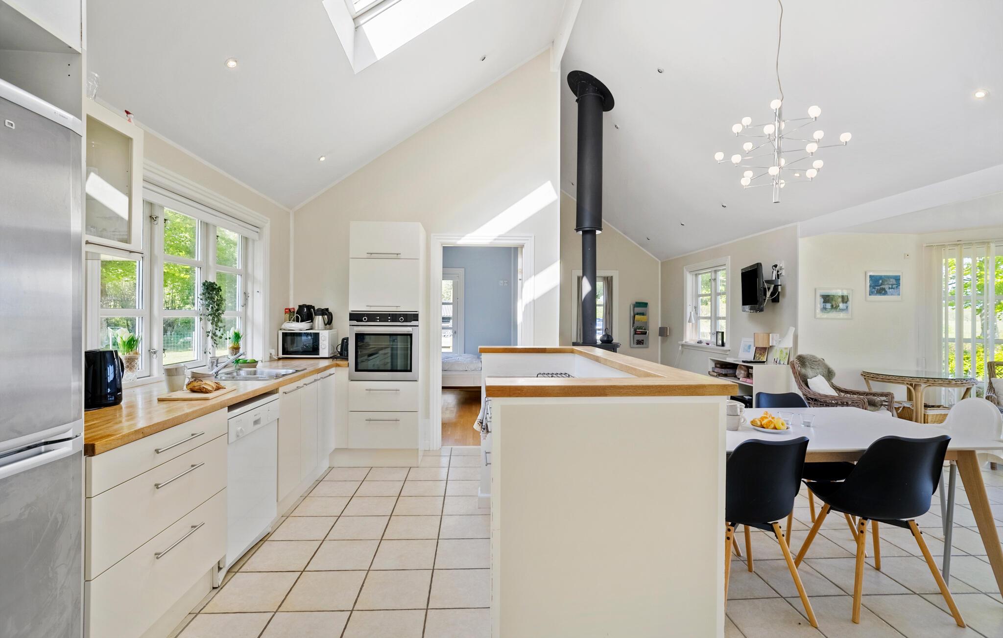 Je vakantiehuis ligt op een prachtig natuurperceel met een panoramisch uitzicht op het sprankelende blauwe water van de Isefjord en biedt tal van voorzieningen om je verblijf bijzonder aangenaam te maken. De inrichting is modern met klassieke elementen die doen denken aan de stijl van Deense hotels aan zee, waardoor een lichte sfeer ontstaat. Kom samen voor de maaltijden in de grote gemeenschappelijke ruimte met het hoge plafond, neem de tijd om te koken in de open keuken en zoek een gezellig plekje in de erker met uitzicht op de tuin en het water. Ga na een dagje uit lekker zitten met een goed boek of een leuk bordspel en geniet van de rust voordat er nieuwe avonturen op je wachten.