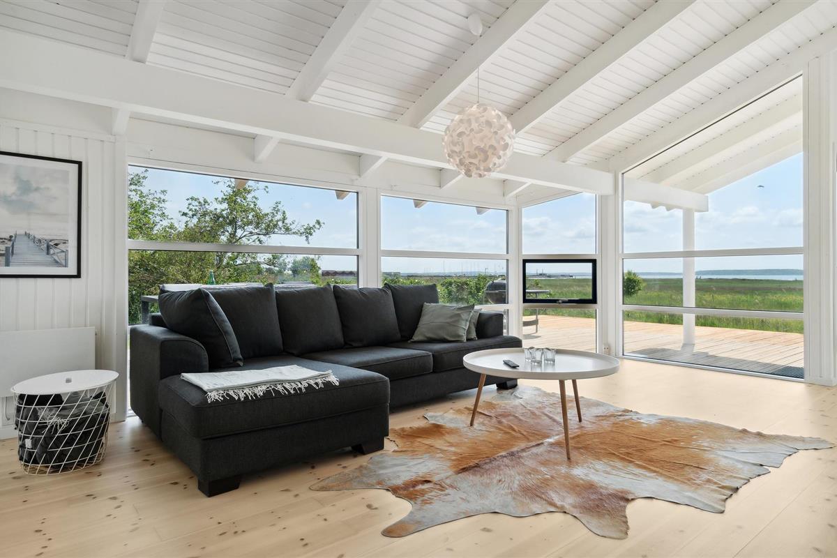 Geniet van een ruim vakantiehuis aan het water op Orø, met prachtig uitzicht, groot terras en nabij zandstrand.