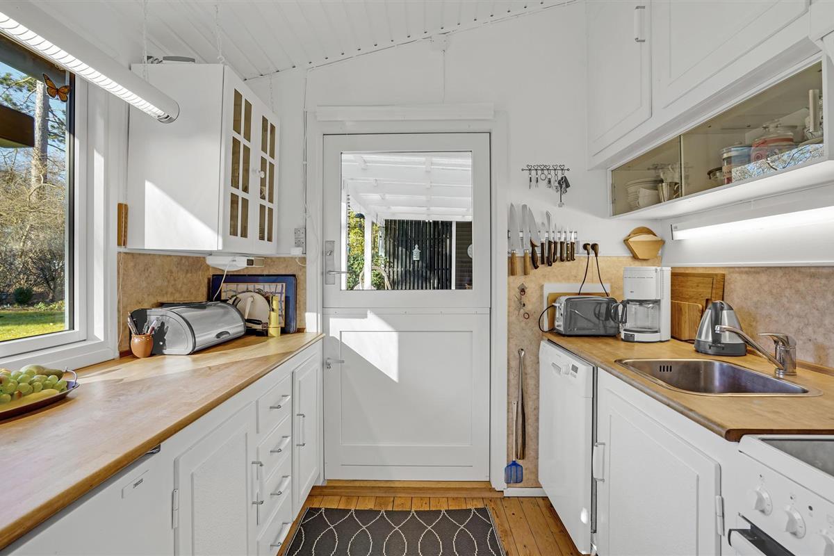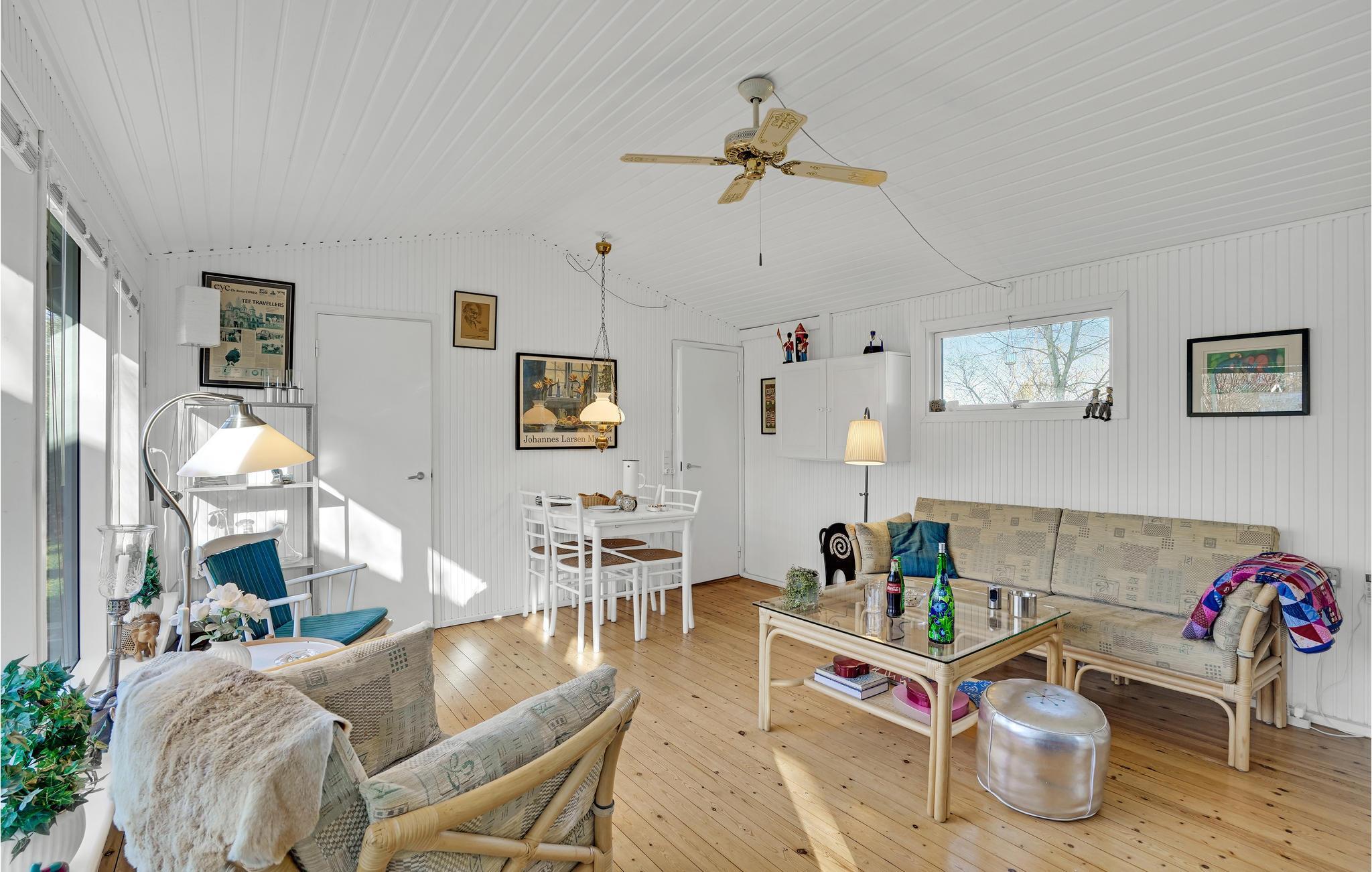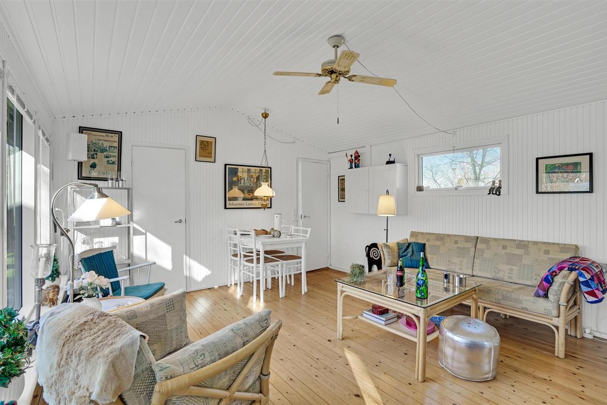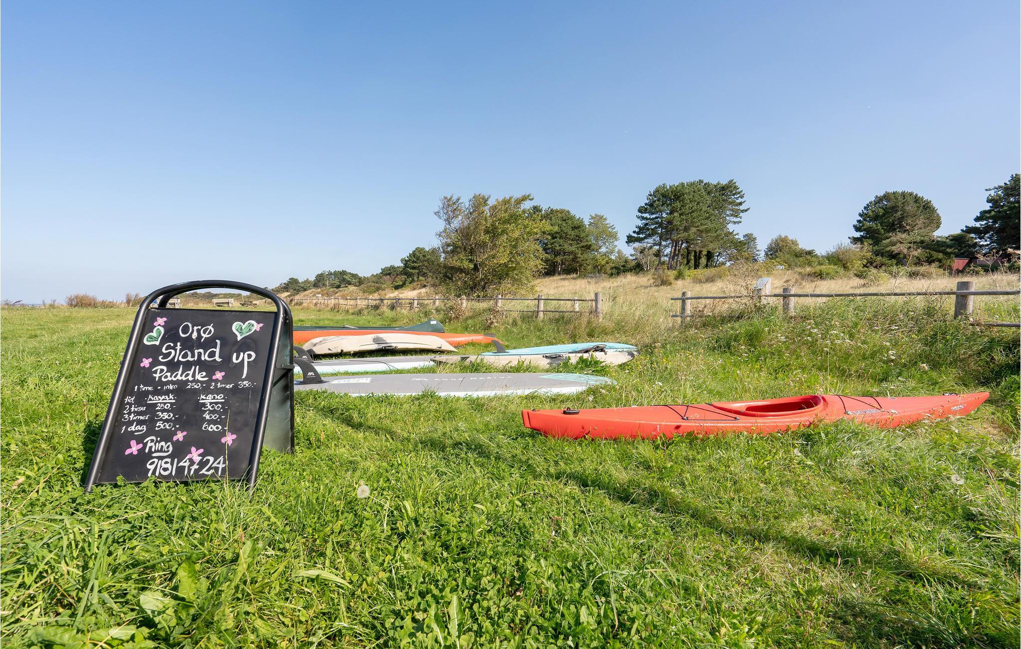 Charmant houten zomerhuis op Orø met open haard, terras en dichtbij de kust voor zwemmen en SUP.