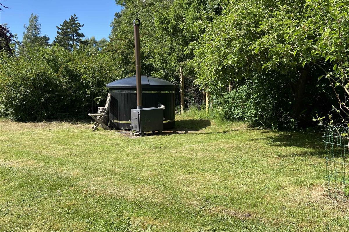 Charmant zomerhuis met hot tub en tuin op idyllisch Orø, dichtbij het fjord en lokale voorzieningen.