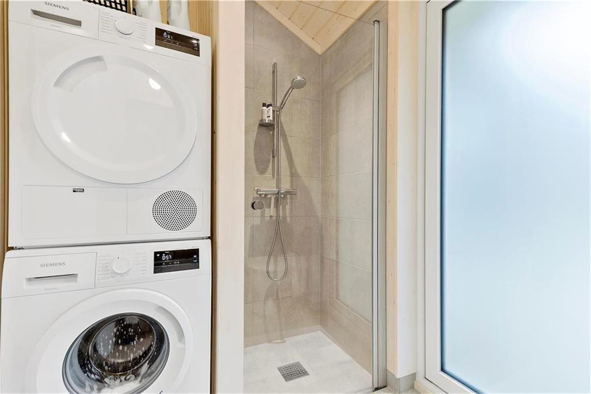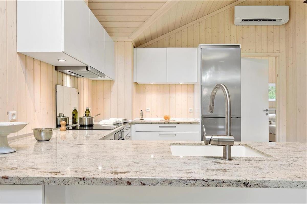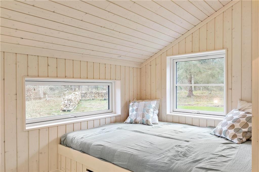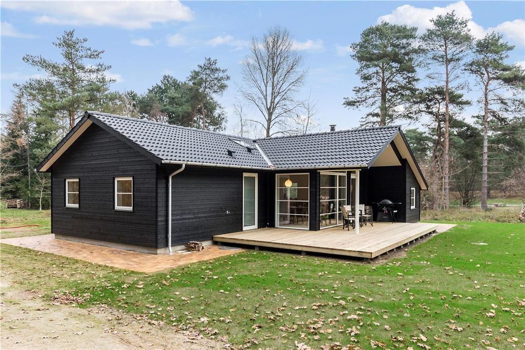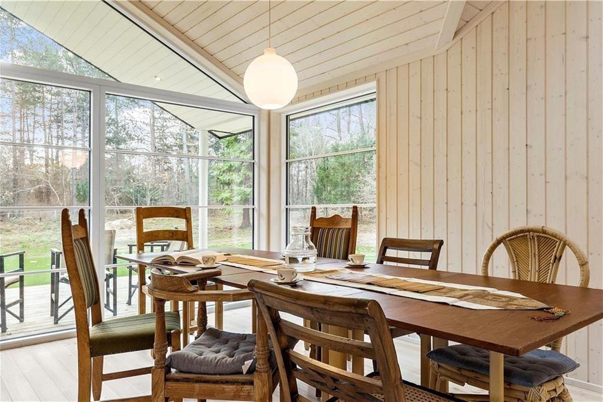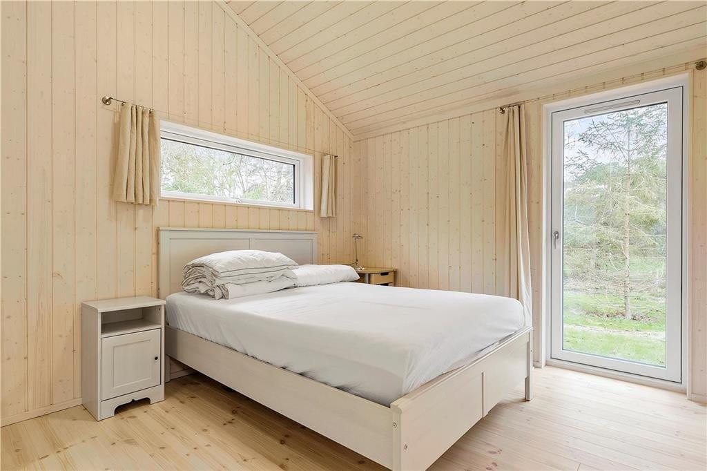 Das Haus verfügt über ein großes Wohnzimmer mit fantastischem Licht, Fernsehen, Wärmepumpe, einer Bettnische mit Doppelbett und großen Panoramafenstern gegen den großen Garten wo die Rehe oft kreuzen. Es gibt 4 gute Schlafzimmer, davon 2 mit Doppelbett, 1 mit einem Ausziehbett und 1 mit Etagenbett und einem Schlafboden mit Matratze. Das Haus hat auch eine schöne und neue offene Küche mit Geschirrspüler. Die beiden Badezimmer sind mit Dusche und Toilette ausgestattet. Vom Wohnzimmer hat man Ausgang zu der schönen Holzterrasse, wo man geschützt sitzen kann und eine gute Mahlzeit vom Grill genießen und das reiche Tierleben beobachten kann.