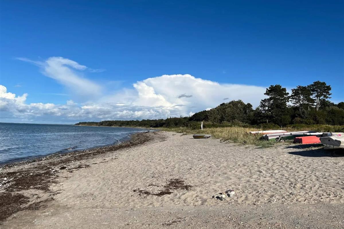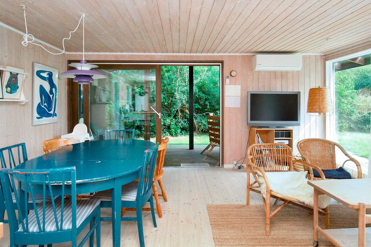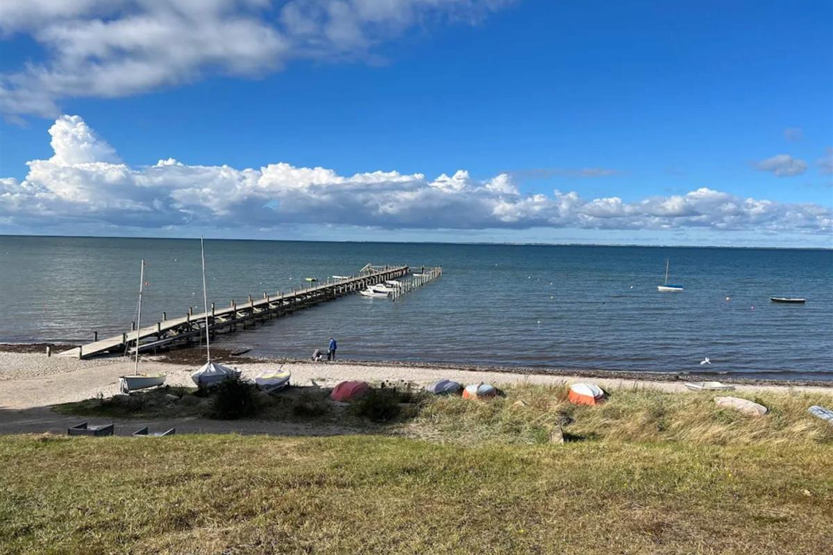 Ferienhaus mit Blick zum Wasser von einer der Terrassen und ruhiger Lage nahe Ordrup. Das Ferienhaus bietet zwei Schlafzimmer mit je zwei Schlafplätzen sowie ein separates Nebengebäude mit Doppelbett. Offener Küchen-/Wohnbereich im Haus für das Familienleben.