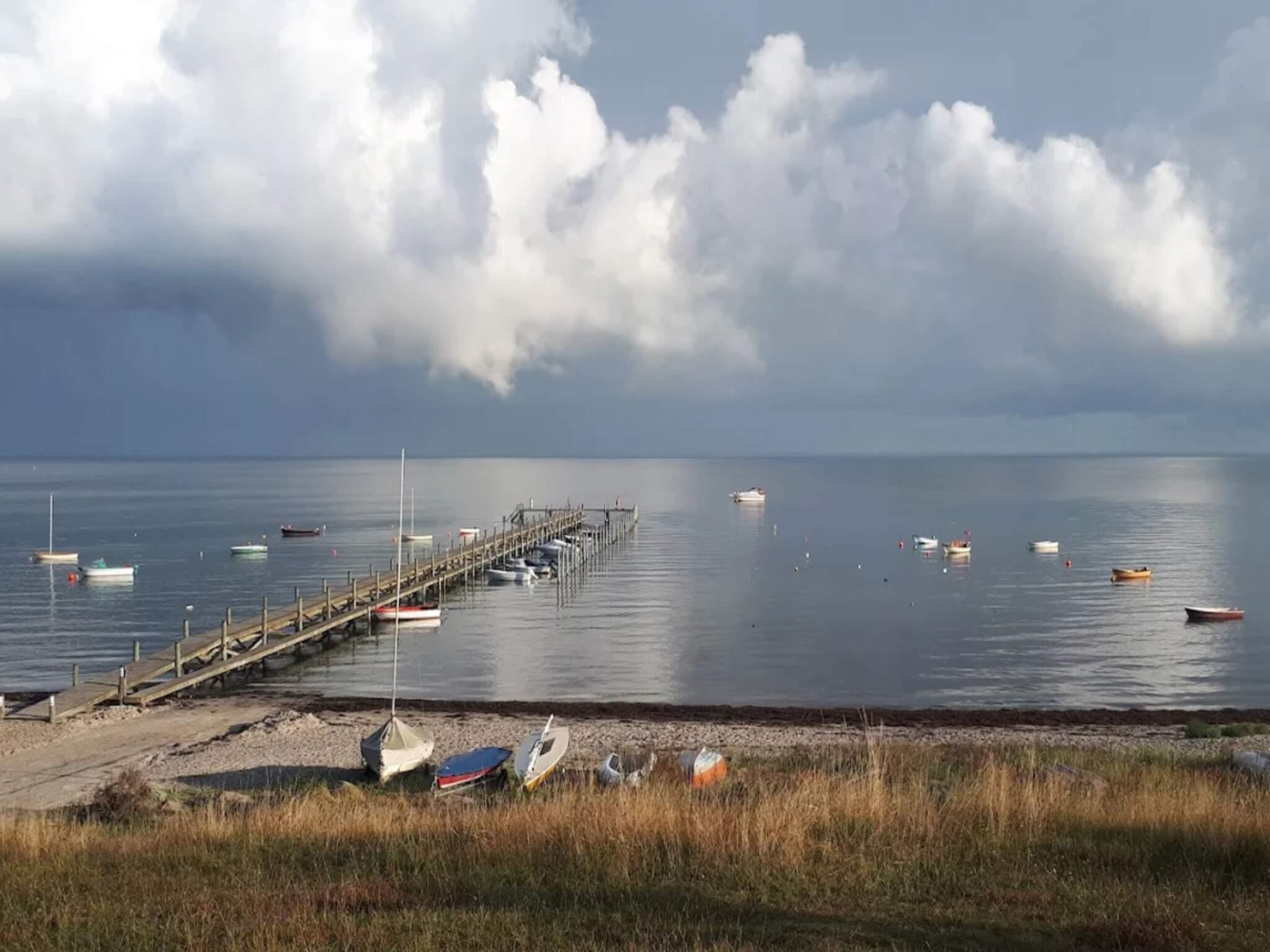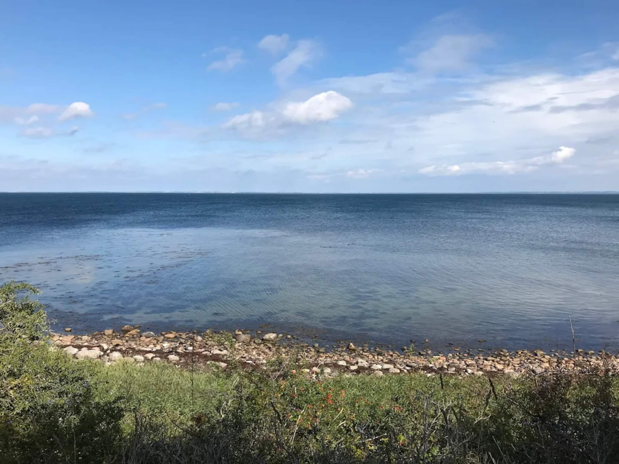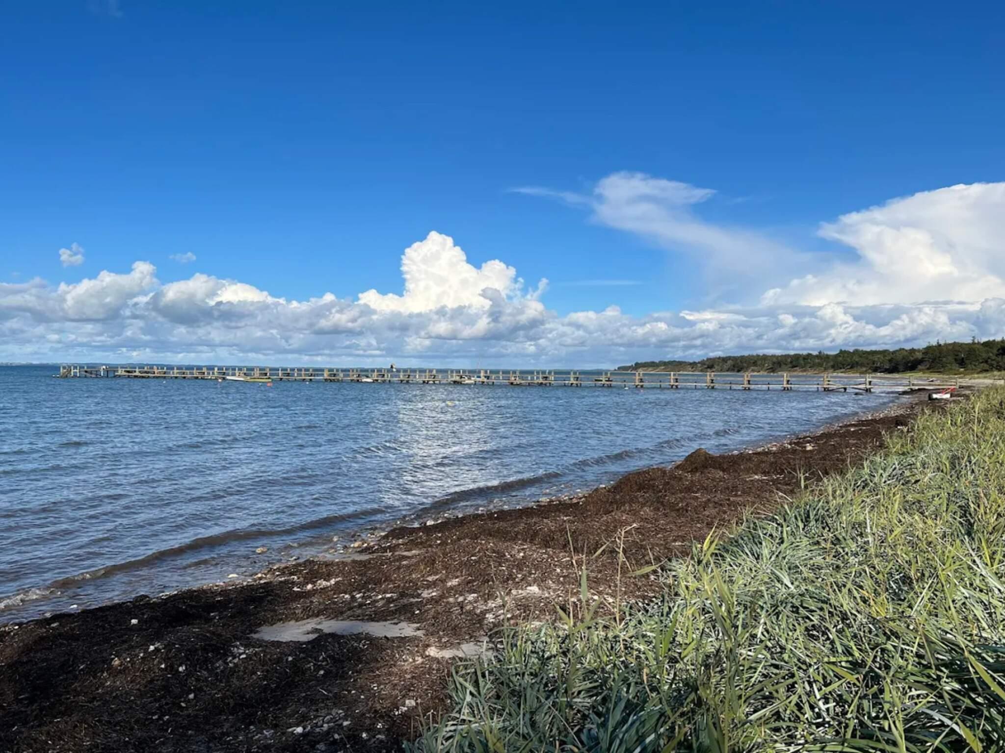 Ferienhaus mit Blick zum Wasser von einer der Terrassen und ruhiger Lage nahe Ordrup. Das Ferienhaus bietet zwei Schlafzimmer mit je zwei Schlafplätzen sowie ein separates Nebengebäude mit Doppelbett. Offener Küchen-/Wohnbereich im Haus für das Familienleben.