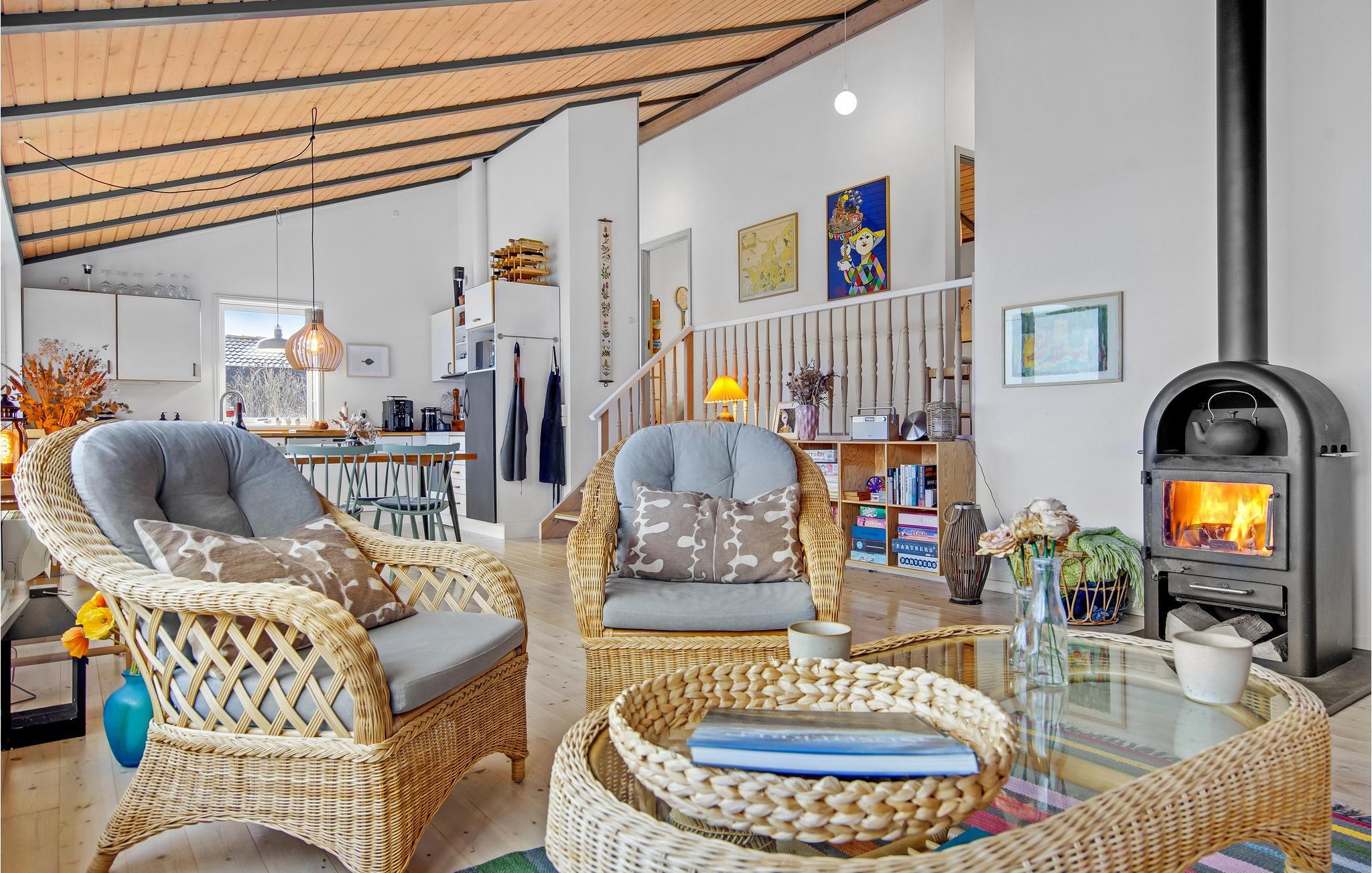 Verheug u op een heerlijke vakantie in dit lichte en mooi ingerichte houten huis in een prachtige omgeving dicht bij zee en strand. In de ruime en goed uitgeruste keuken kunt u uw culinaire vaardigheden ontwikkelen en genieten van uw maaltijden aan de eettafel met een prachtig uitzicht op zee. Maak het uzelf gemakkelijk in de gestoffeerde meubels en warm op bij de open haard na een dag in de frisse herfstlucht.