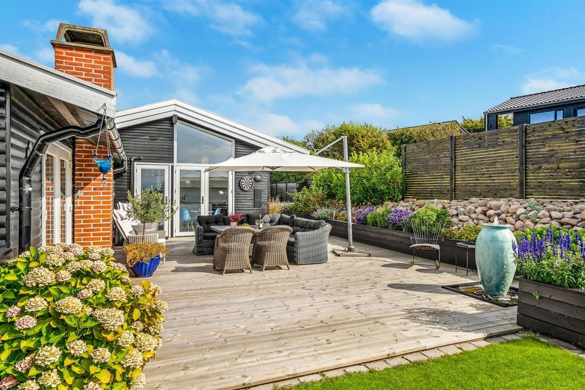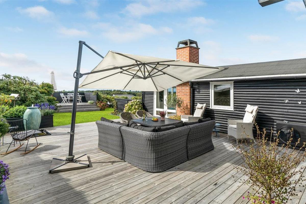 Ontspan op het gedeeltelijk overdekte terras in comfortabel tuinmeubilair, geniet van de lange zomeravonden en de specialiteiten van de grill.