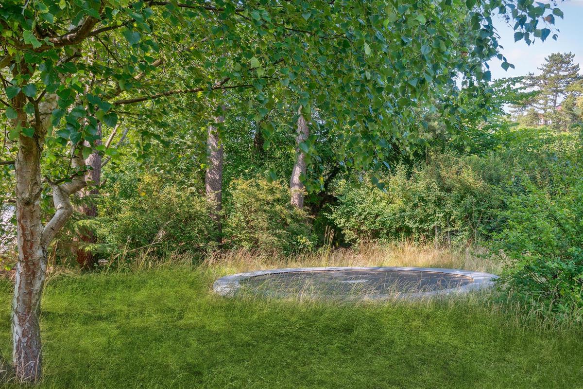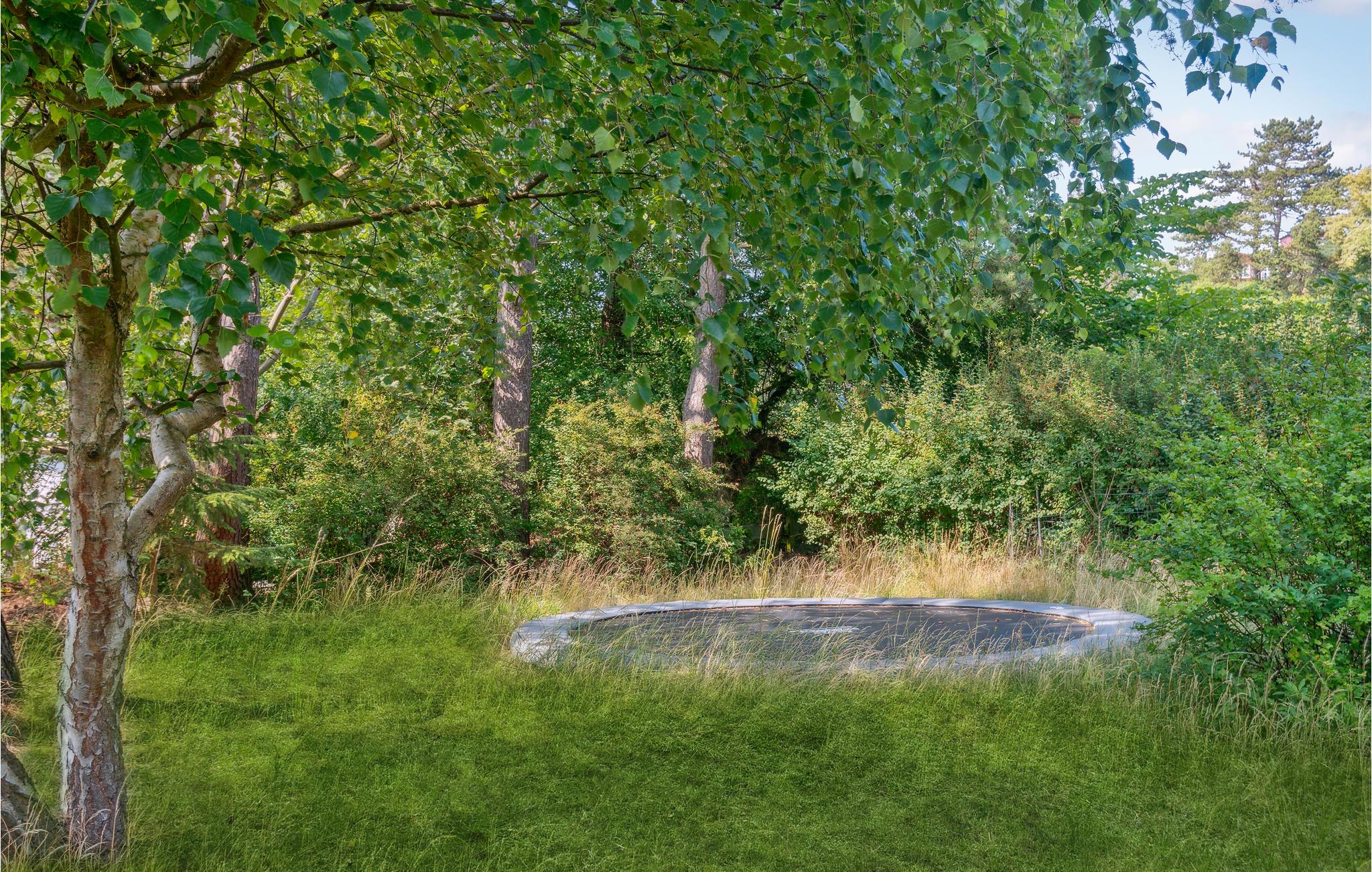 Breng aangename uren door buiten op het terrein omringd door bomen, bereid heerlijke maaltijden op de barbecue terwijl je kinderen vrolijk springen op de trampoline.