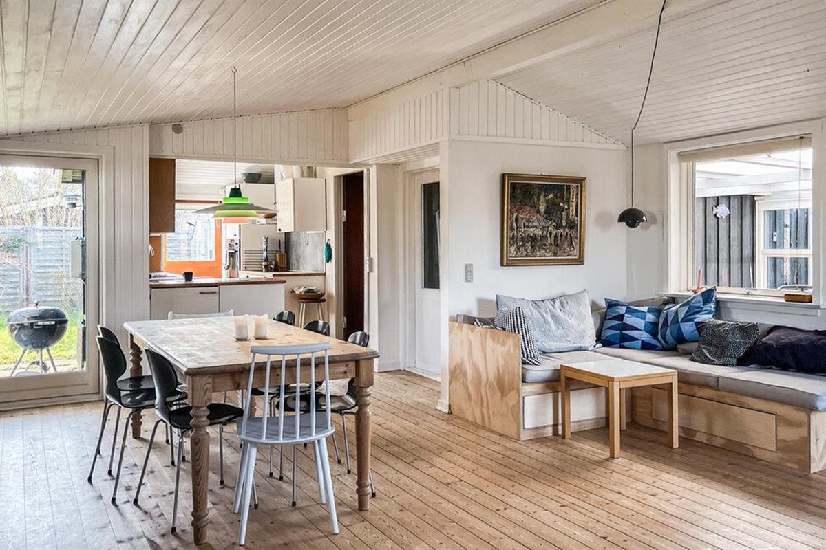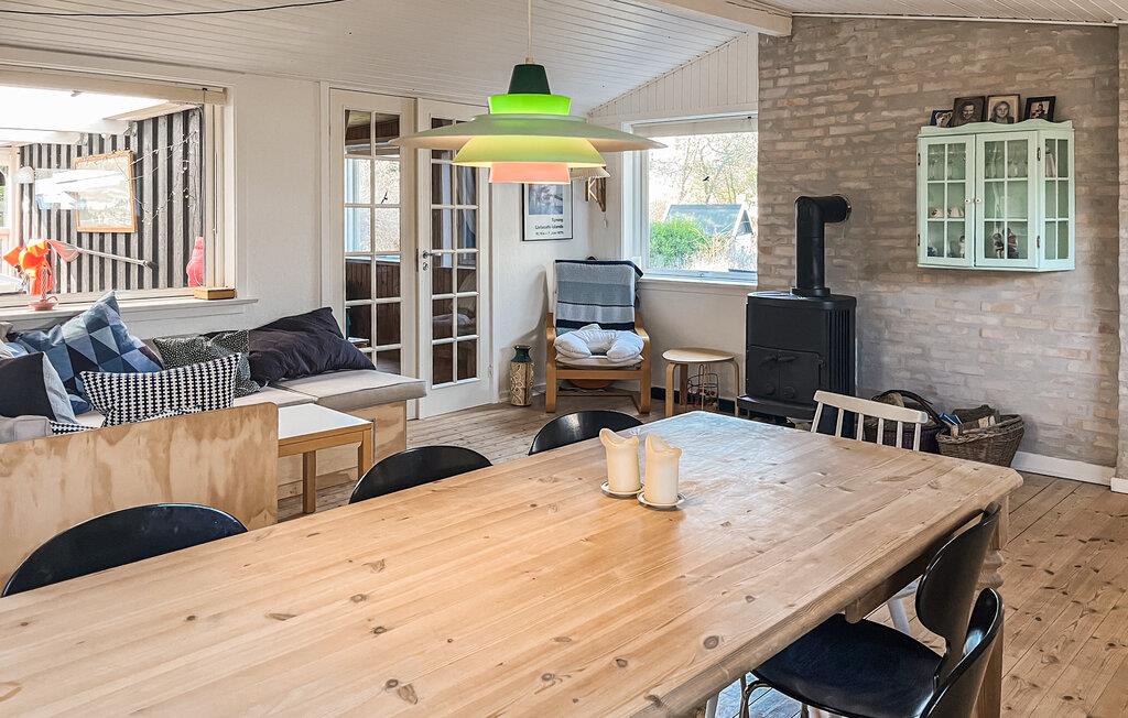 Ontspan in dit gezellige vakantiehuis vlak bij het strand van Ordrup met speelvoorzieningen voor kinderen.
