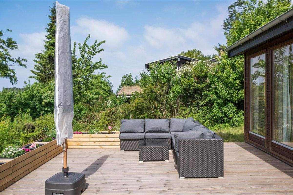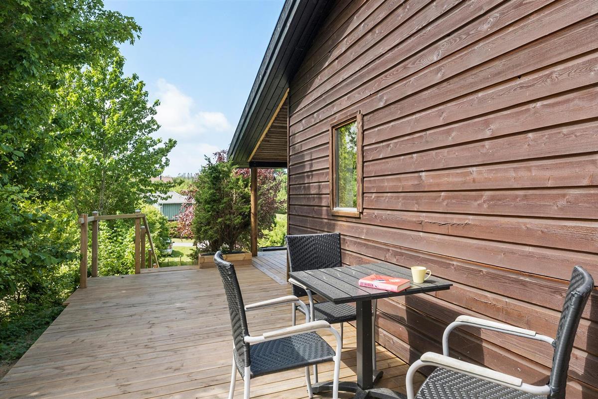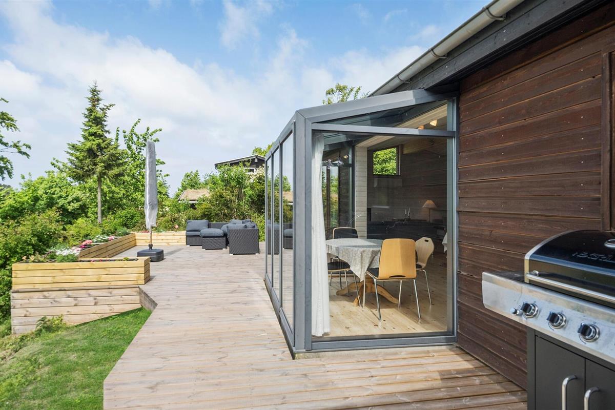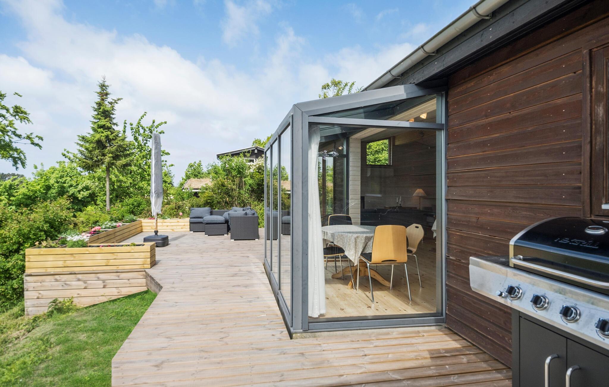 Rustig gelegen vakantiehuis met serre, sauna en prachtig houten terras in het landelijke Fårevejle.