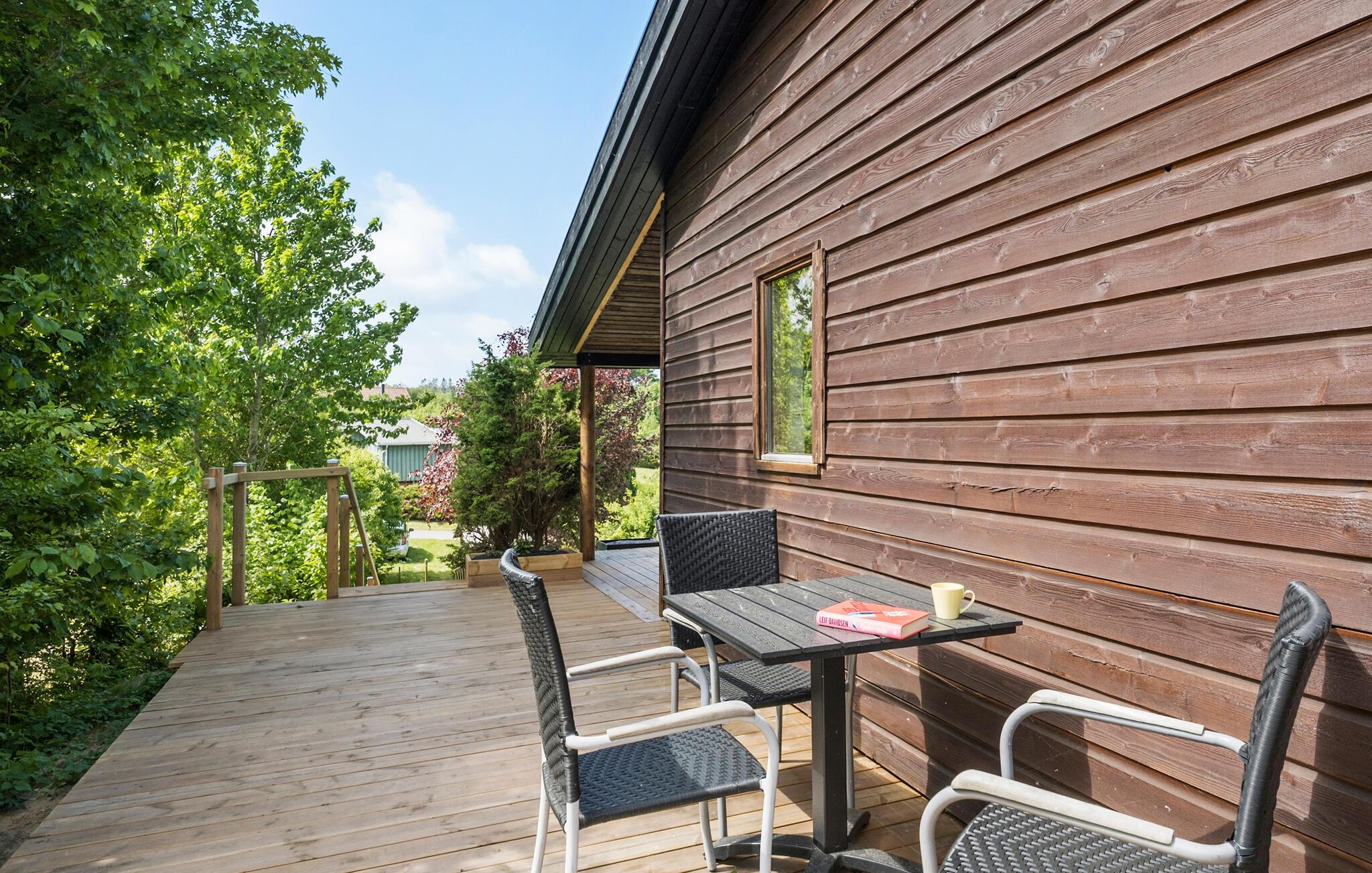 Het prachtige houten terras is de ideale plek om te zonnebaden en te genieten van een barbecue of maaltijd. Plan je excursies en activiteiten voor de komende dagen van je vakantie.