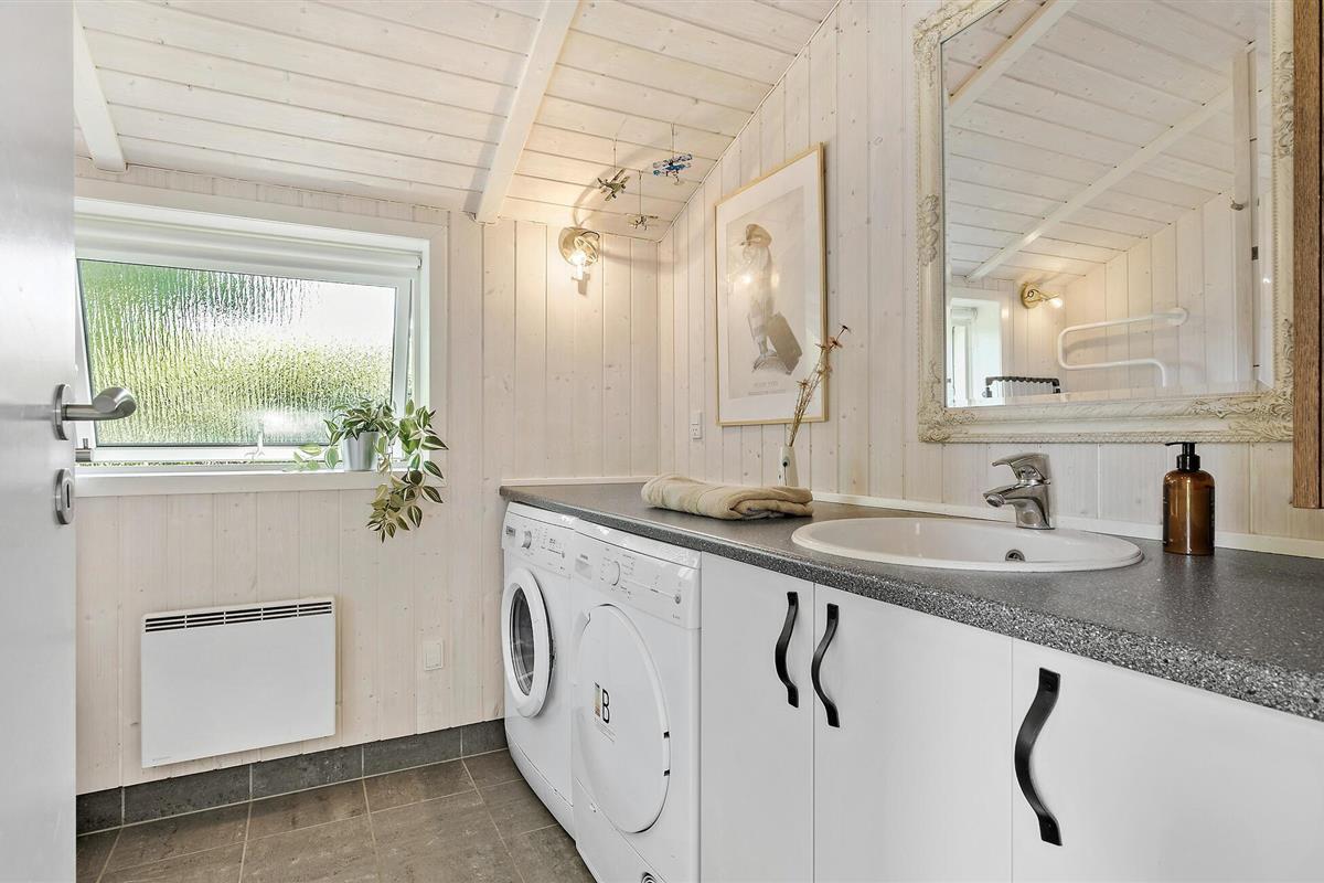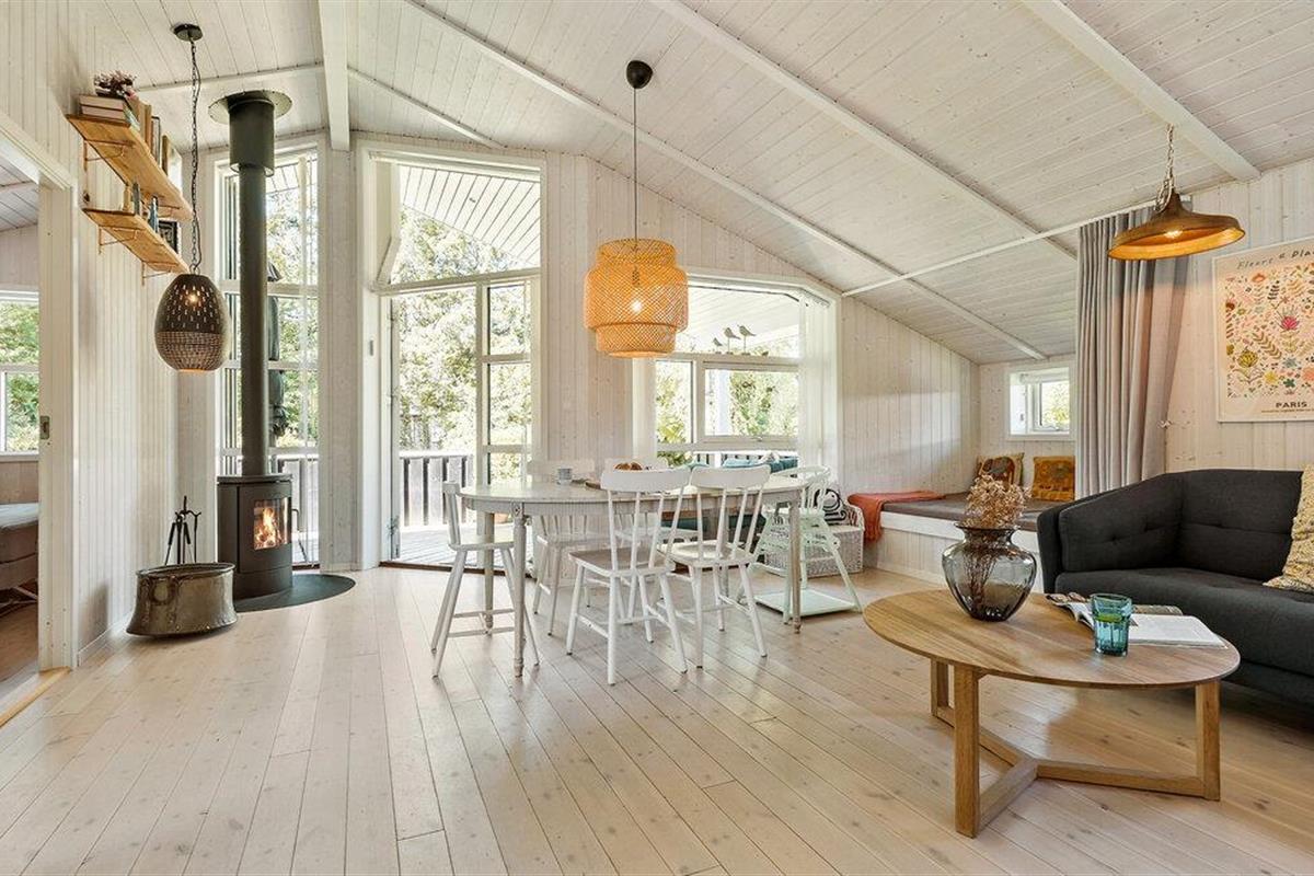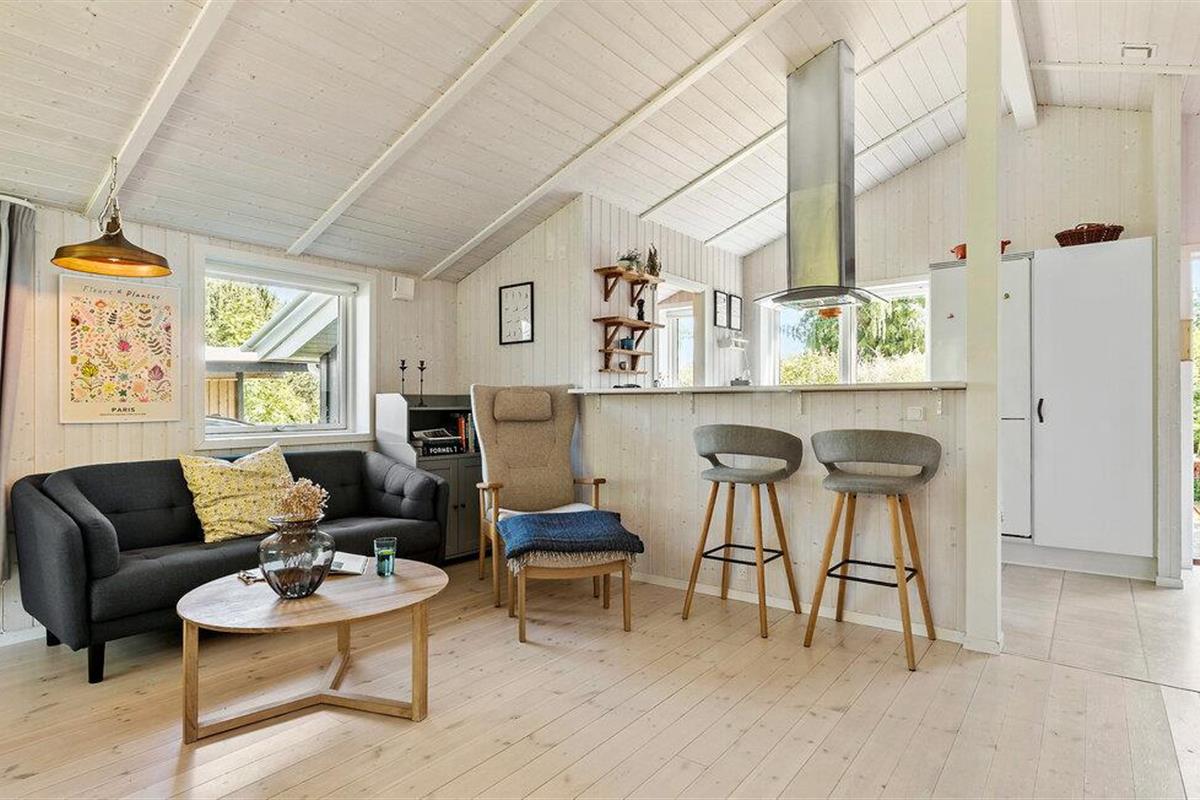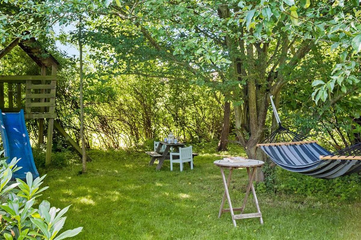 Er is ook genoeg te ontdekken in de buitenruimte. Verschillende mooie zithoeken en een hangmat nodigen je uit om te blijven hangen, terwijl de kleine vakantiegasten kunnen glijden, schommelen en stuiteren op de trampoline. Maak een wandeling naar het dichtstbijzijnde zandstrand en geniet van een verfrissende duik in de baai van Sejerø.