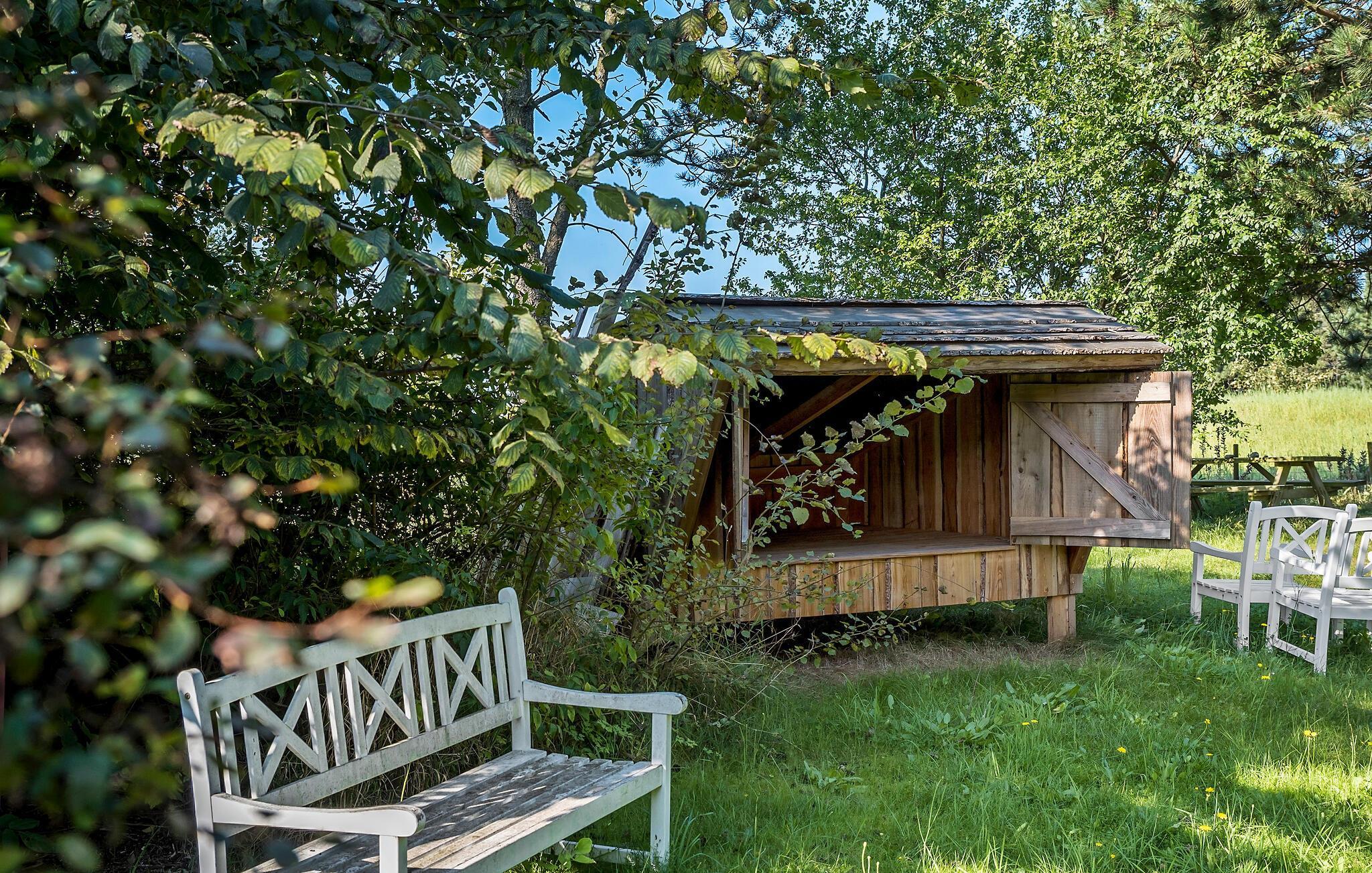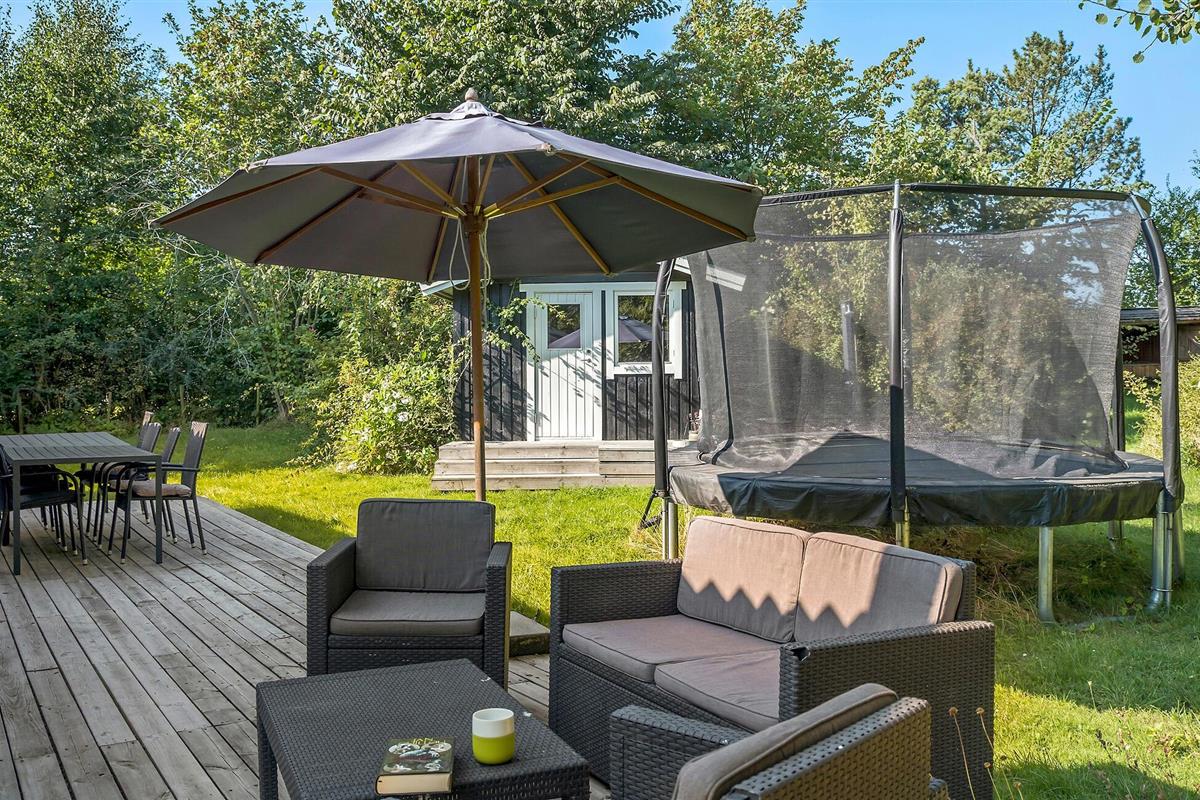 Terwijl jij de laatste hand legt aan de grote barbecue, kunnen de kinderen springen op de trampoline of verstoppertje spelen in de tuin. Het afdak biedt je de mogelijkheid om een nacht onder de sterren door te brengen.