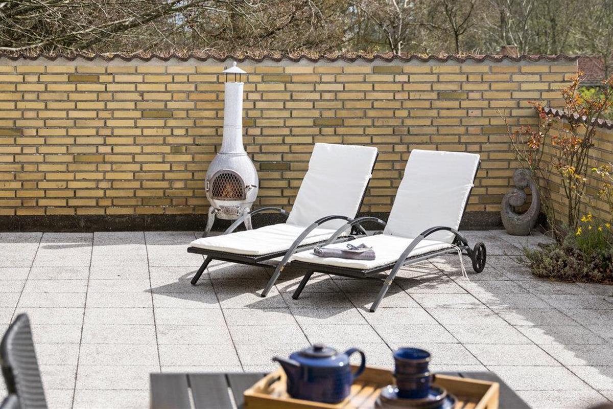 Ontsnap naar dit lichte vakantiehuis in Ordrup Strand met zeezicht en een zonnig terras.