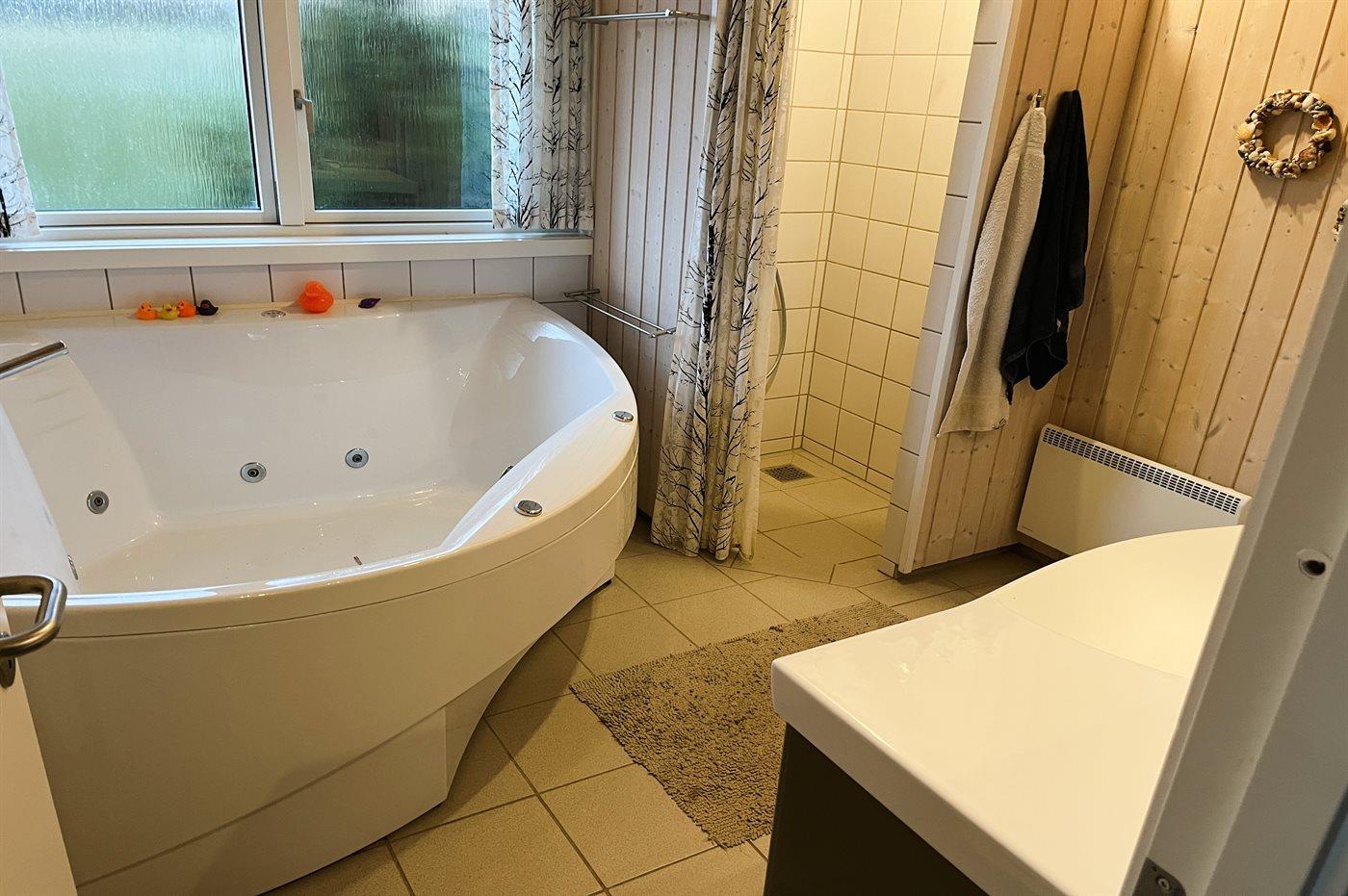 Er is 2 badkamers met douchehok en 2 toiletten. Er is vloerverwarming in 2 van de badkamers.