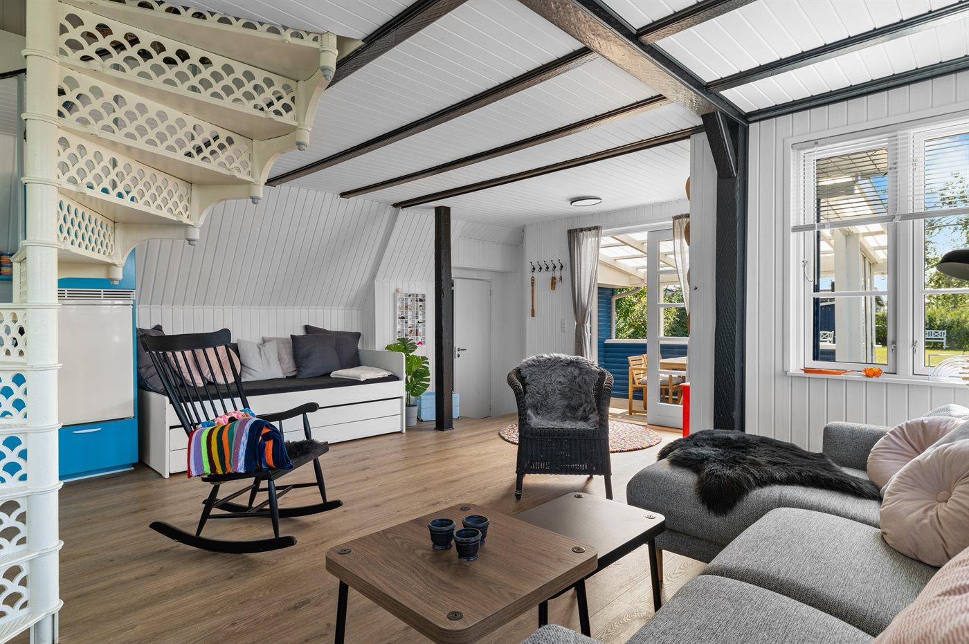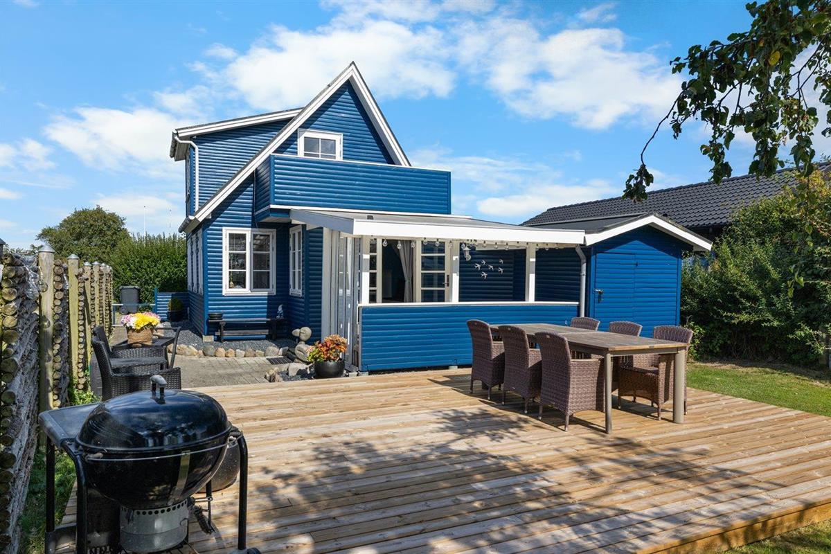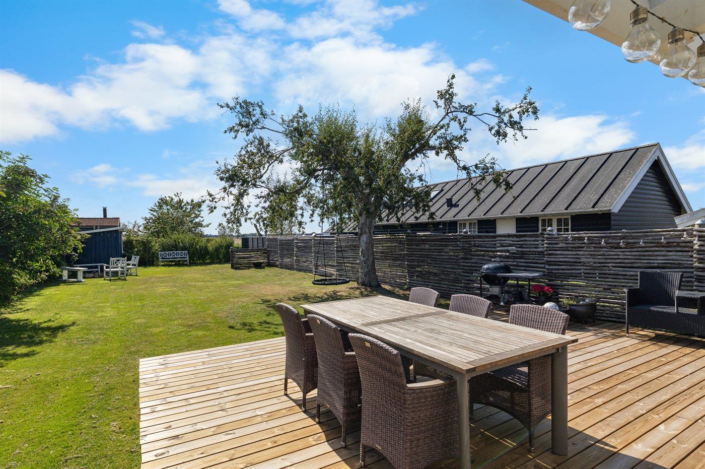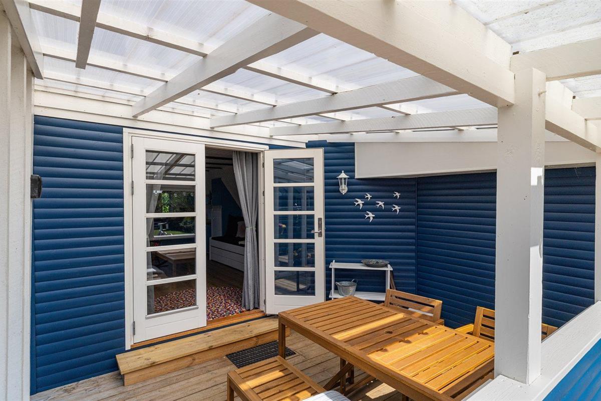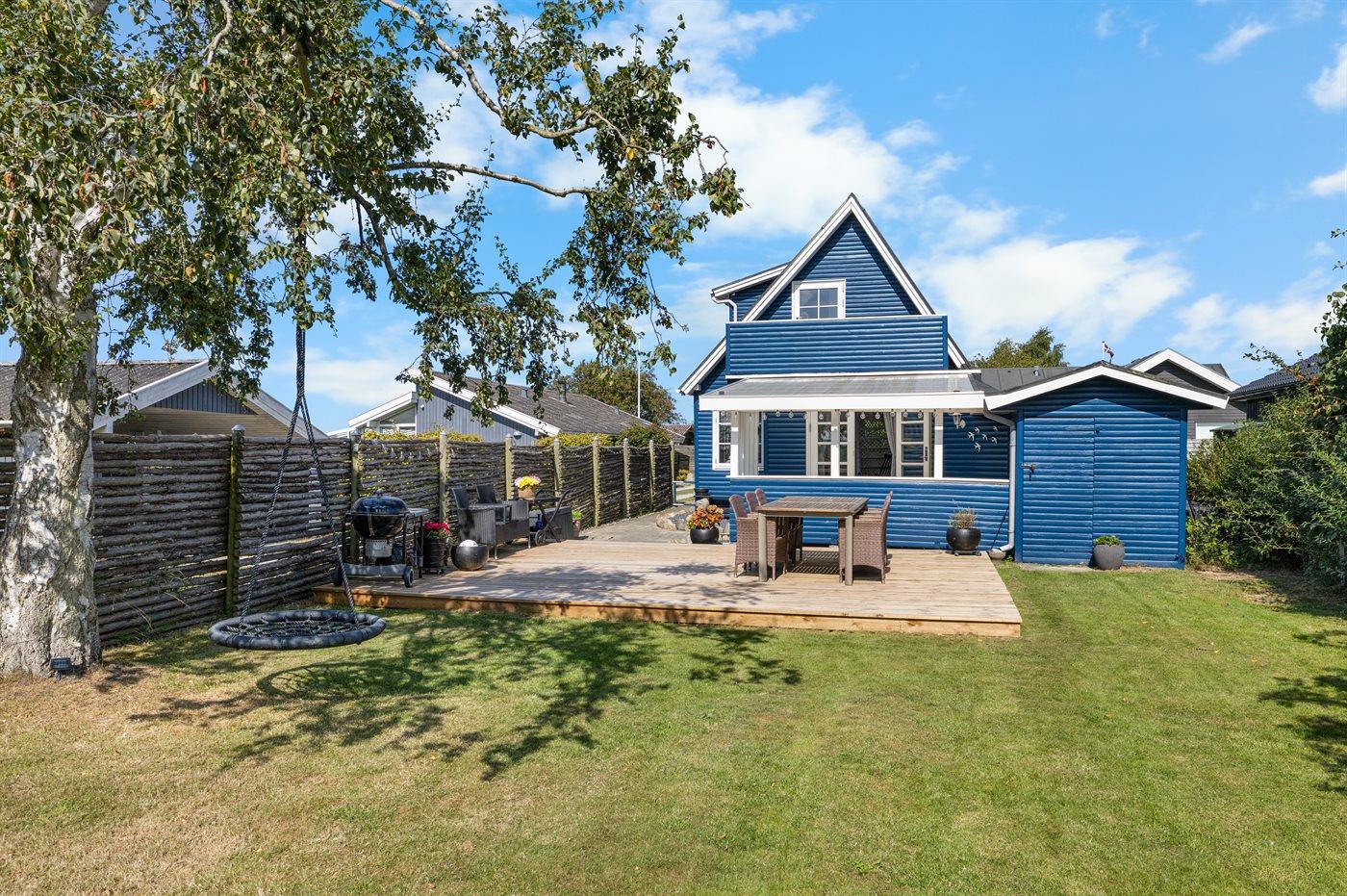 De vakantiewoning is gelegen op een 446 m² groot aangelegde tuin. Afstand tot de zee 150 m. Dichtstbijzijnde winkel 2000 m. Bij de vakantiewoning hoort terras. Daarnaast is er een overdekt terras. Balkon. Schommel.Vuurplaats. Barbecue. Parkeerplaats bij het huis.