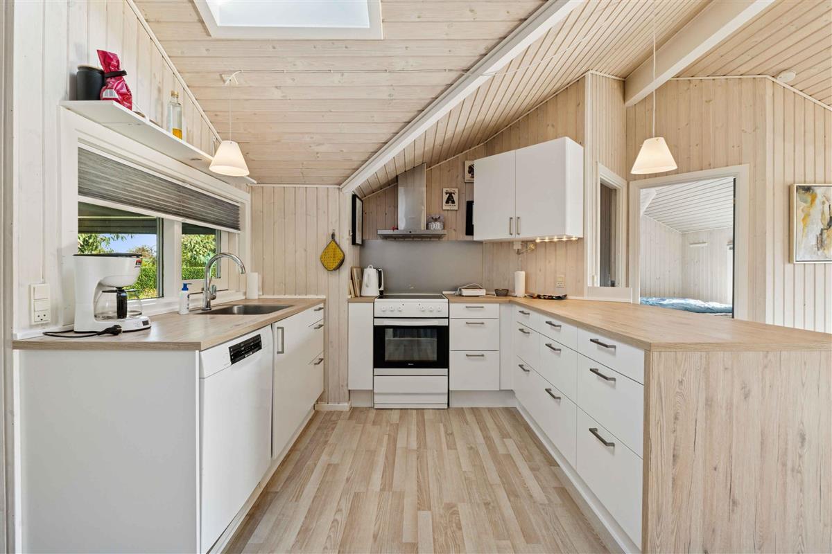 Het vakantiehuis biedt 86 m² woonruimte met plaats voor 8 personen, verdeeld over 4 slaapkamers. De inrichting is eenvoudig, met een gloednieuwe keuken, nieuwe meubels en praktische voorzieningen zoals een vaatwasser, wasmachine, internet en tv. Een houtkachel en elektrische verwarming zorgen het hele jaar door voor comfort. Vanuit de woonkamer is er directe toegang tot een ruime houten terras, waar maaltijden en ontspanning kunnen worden genoten in een rustige omgeving. Het terras biedt beschutting tegen de wind, en huisdieren zijn welkom, zodat het hele gezin samen kan zijn. De ligging is ideaal voor een ontspannen vakantie. Op slechts 6–7 minuten lopen ligt het strand, waar het zwemwater en de frisse zeelucht voor een echt vakantiegevoel zorgen. De nabijgelegen camping biedt mogelijkheden voor kleine boodschappen en activiteiten. De omgeving staat bekend om zijn rustige sfeer en prachtige natuur. Het strand is ondiep en kindvriendelijk, perfect voor zwemmen, wandelingen en strandactiviteiten. In het achterland zijn er uitstekende fiets- en wandelroutes door bossen en velden. Otterup ligt op slechts 7 km afstand met winkels, restaurants en lokale boetieks, en een korte autorit brengt u naar Odense met zijn culturele aanbod en levendige stadsleven.