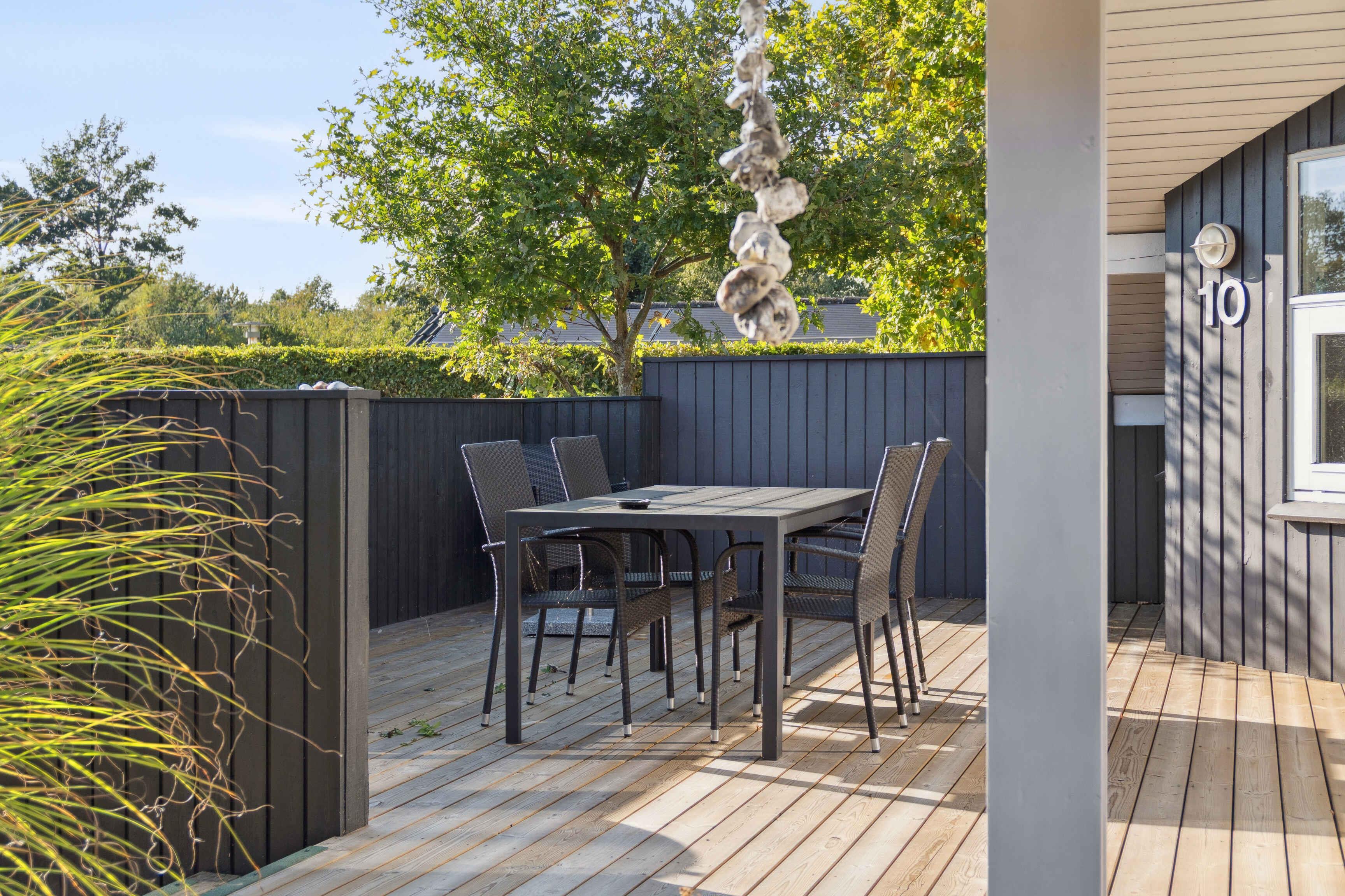 Vakantiehuis van 86 m² voor 8 personen met nieuwe keuken, meubels en voorzieningen zoals vaatwasser, wasmachine, internet en tv. Houten terras, dicht bij strand, natuur en stad. Huisdieren welkom – ideaal voor een ontspannen gezinsvakantie.