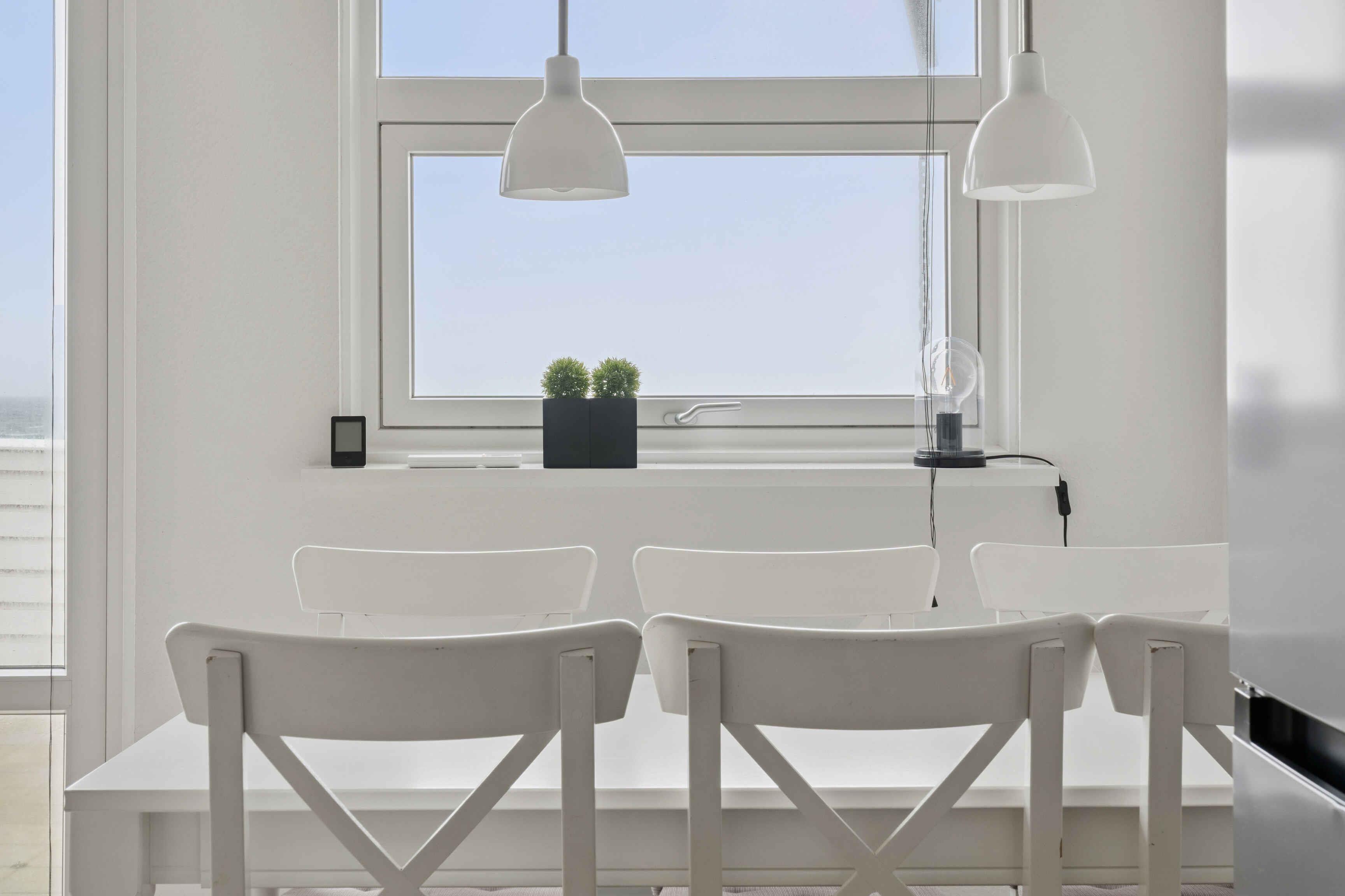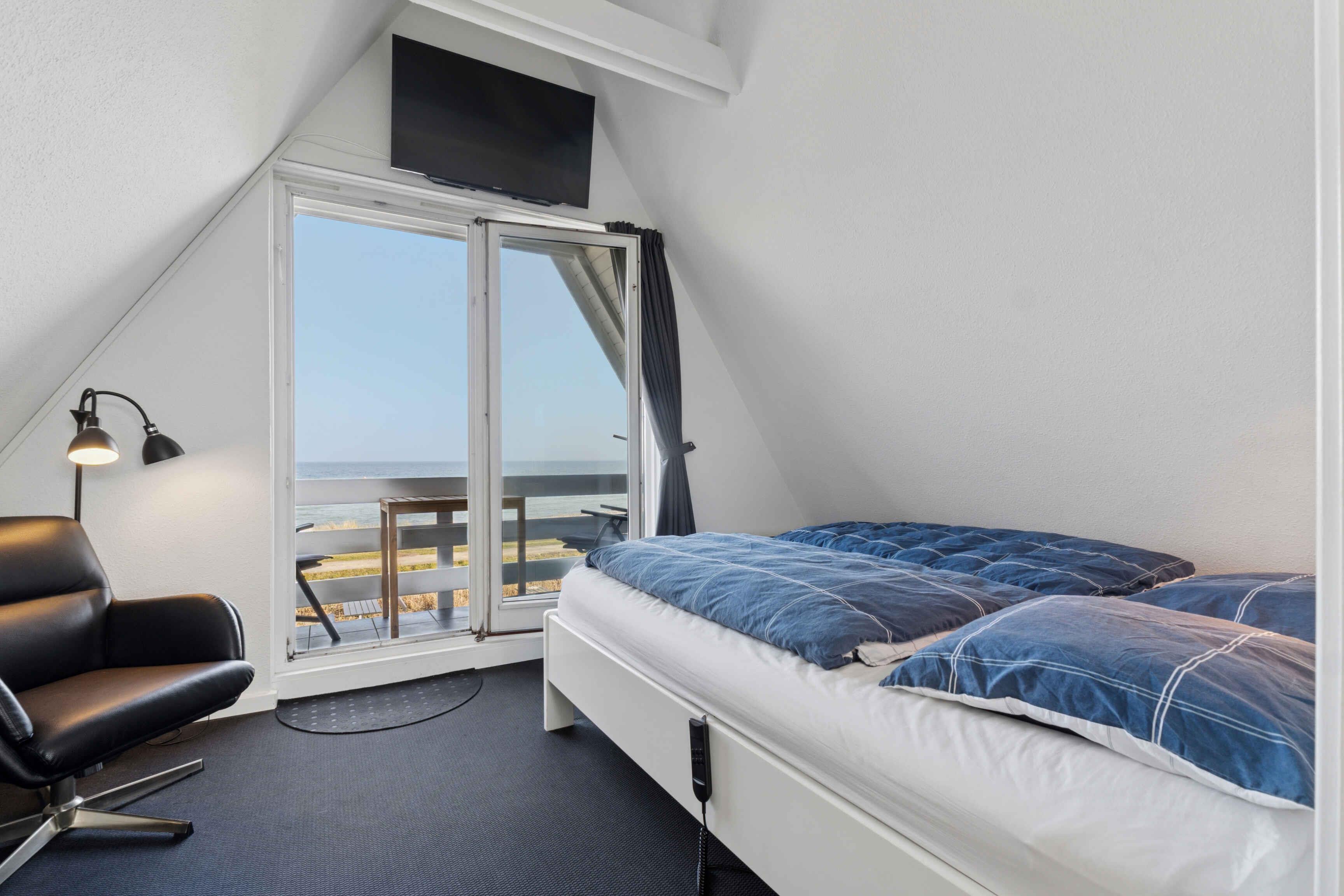 Licht vakantiehuis van 59 m² op slechts 30 m van het strand. Goed uitgeruste keuken met apparatuur en badkamer met vloerverwarming. 2 slaapkamers en balkon op de 1e verdieping. Dicht bij minigolf, waterpark en speeltuin, en restaurant op ca. 250 m.