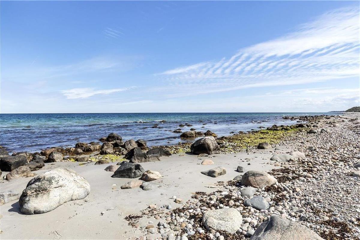 Dein Grundstück und die Umgebung werden von alten, hohen Nadelbäumen geprägt, zwischen denen du hindurch auf das Meer blickst. Mache es dir unter der Überdachung zwischen den beiden Gebäuden auf dem Bambussofa gemütlich und genieße den Ausblick. Mit ein wenig Glück beobachtest du dabei sogar das ein oder andere Reh, das sich auf deinem Grundstück tummelt. Du siehst das 40 Meter entfernte Meer nicht nur, sondern hörst und reichst es auch. Zu jeder Zeit kannst du zum Baden aufbrechen oder mit deiner Angelrute losziehen. Entlang der Kattegatküste und vor den steilen Küstenabhängen Ebbeløkes erwarten dich sehr gute Angelgewässer.