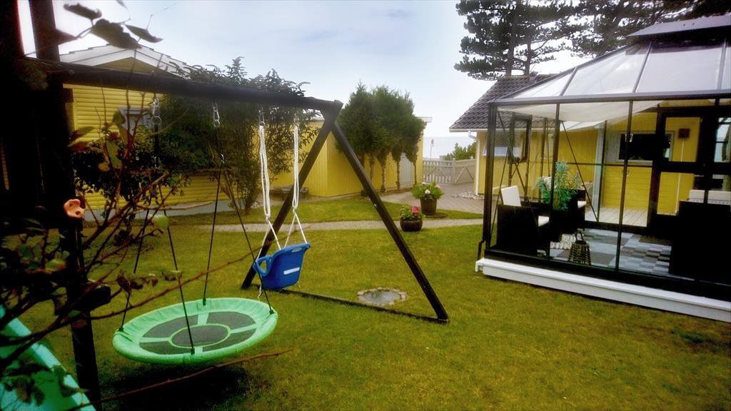 Der familienfreundliche Garten umfasst einen Shelter und ein Klettergerüst mit einer Schaukel und einer Rutsche. Hinzu gesellt sich ein Spielhaus für die Jüngsten. Im Gartenpavillon bietet sich euch ausreichend Platz, um hier zusammen die Mahlzeiten zu genießen. Selbst abends werdet ihr euch gern im Pavillon aufhalten, durch die Glasscheiben auf den funkelnden Sternenhimmel über euch blicken und die Erlebnisse des Tages Revue passieren lassen. Eure erholsamen und entspannten Stunden im eigenen Garten krönt ihr mit dem ein oder anderen täglichen Abstecher an den Strand, an dem ihr übrigens auch gut angeln könnt.