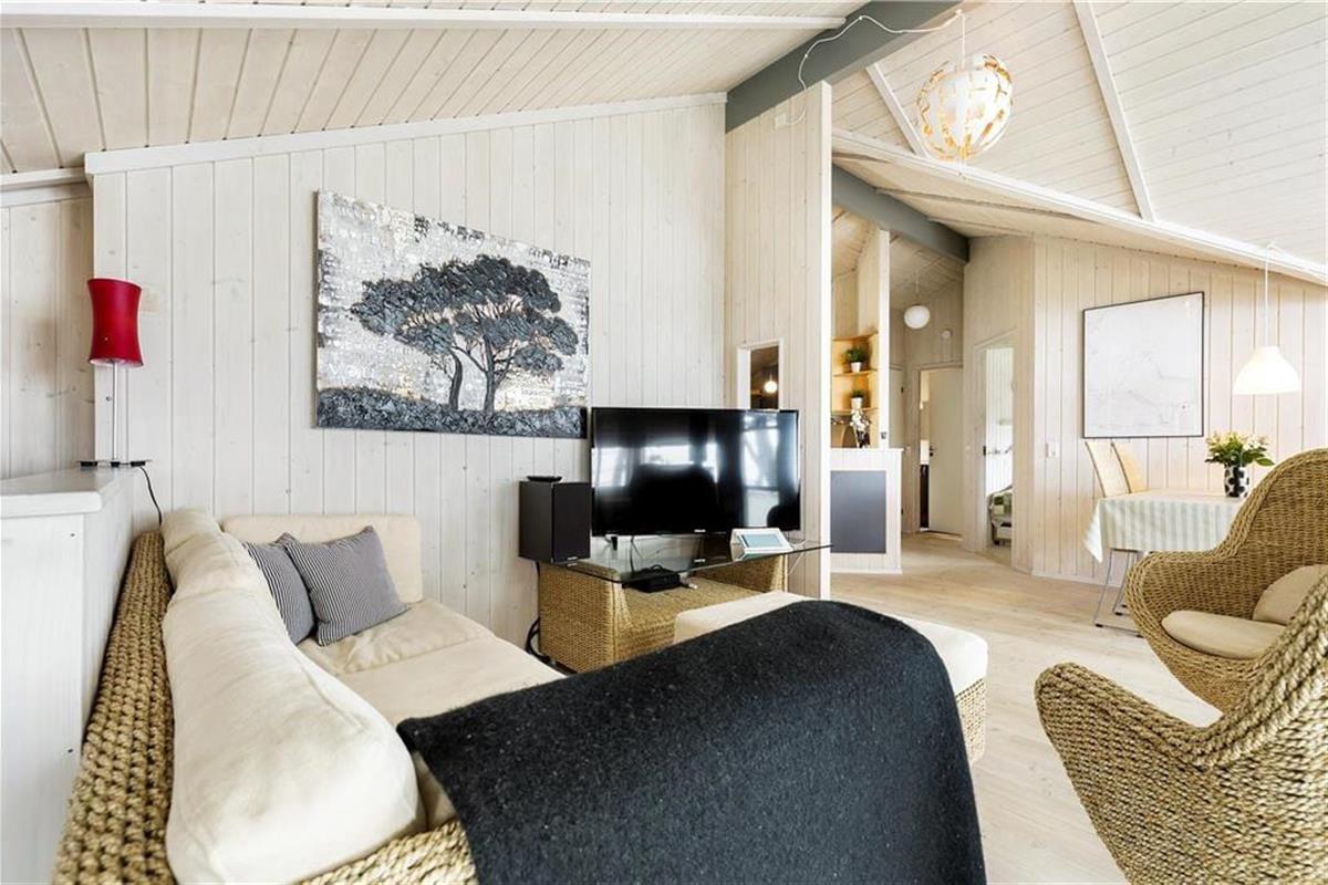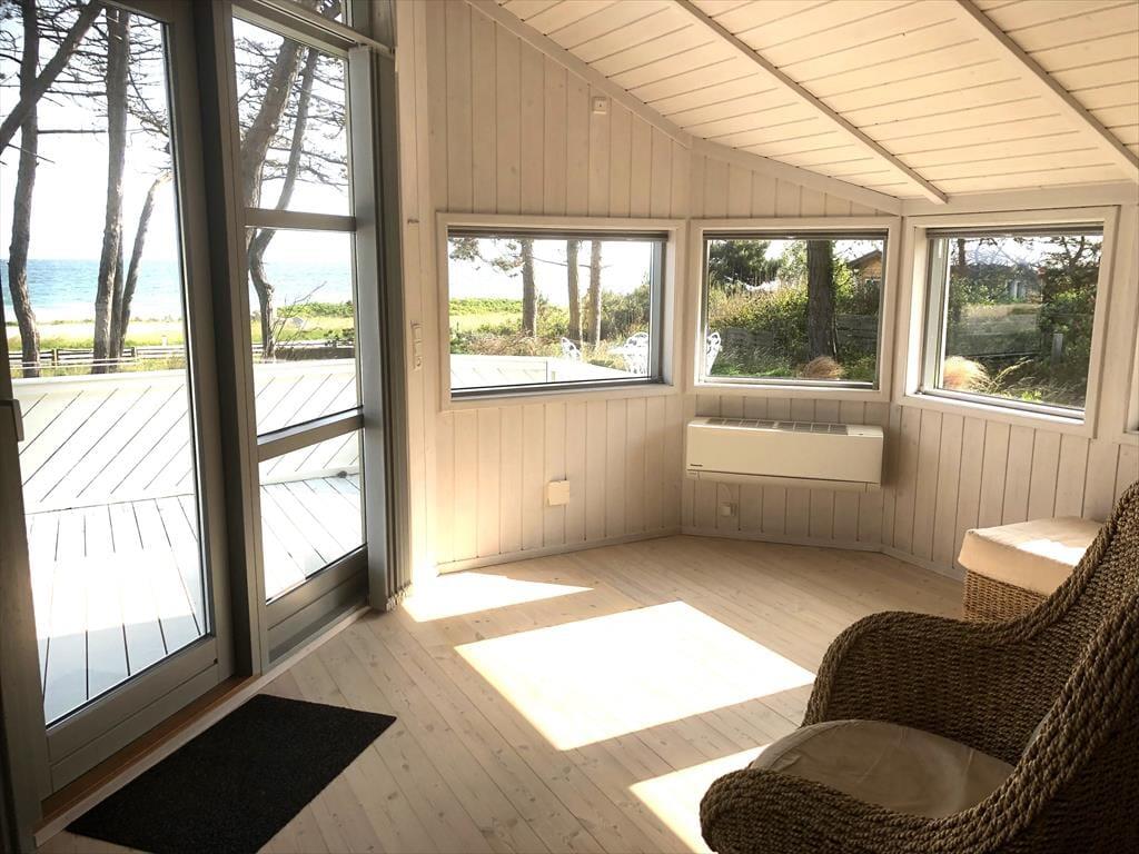 Wohnraum, Küche und einer der Schlafräume verwöhnen bei diesem Mietobjekt in der ersten Häuserreihe vor dem Kattegat mit Aussicht auf das Meer. Du wirst viel Zeit damit verbringen, einfach in aller Ruhe aus dem Fenster zu blicken, die wechselnden Farben des Wassers zu genießen und den vorbeiziehenden Booten und Schiffen nachzuschauen. Falls du deiner Kreativität freien Lauf lassen möchtest, lässt du dich beispielsweise am Esstisch nieder und malst oder zeichnest den schönen Blick auf das Meer. Deine Kinder werden ihre Interpretation der Aussicht garantiert ebenfalls gern zu Papier bringen. Kuschelig und entspannt geht es im Wohnraum nicht nur in der Polstersitzgruppe zu, sondern auch in der gemütlichen Schlafnische, die mit ihrem Doppelbett zum Lesen und Spielen und zum ein oder anderen Nickerchen einlädt.