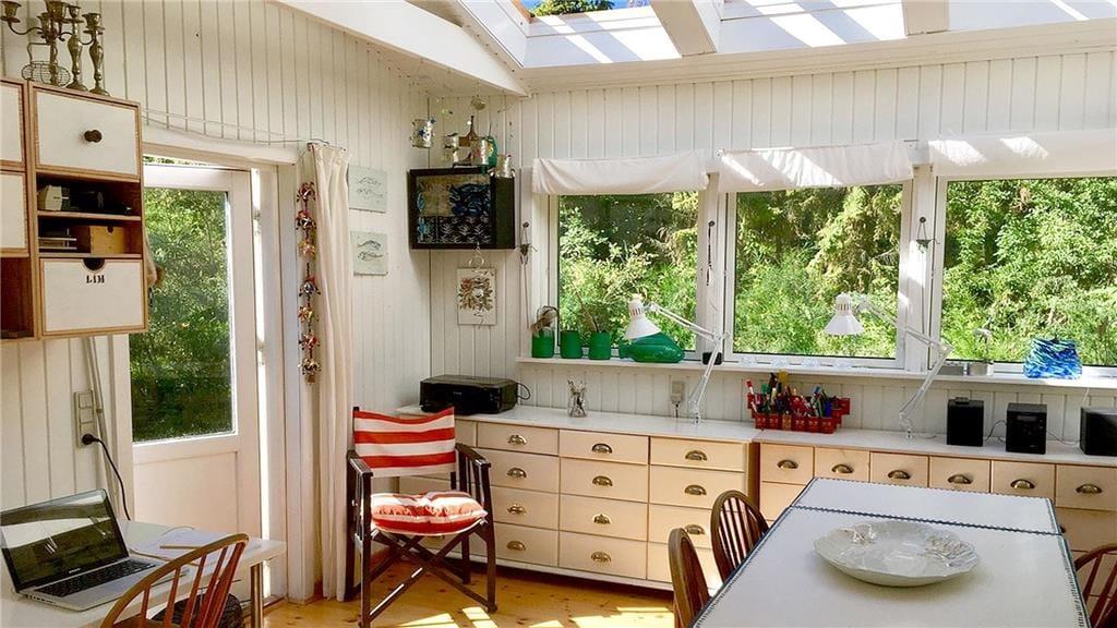 Nahe der Küste der Sejerø Bucht begrüßt dich diese kleine, authentische Perle eines Ferienhauses, die mit klassischem Sommerhausflair zu verzaubern weiß. Der Wohnraum präsentiert sich dank der Dachflächenfenster und der Fensterpartie in Richtung Garten angenehm hell und freundlich. Dieser Ort lädt zur kreativen Entfaltung ein. Wenn du eine poetische Ader hast, gerne zeichnest oder malst, kannst du dich in diesem stimmungsvollen Haus nach Herzenslust ausleben. An einem Ende des Wohnraumes befindet sich ein Kaminofen, der entspannte Stunden auf dem Sofa oder gesellige Spielrunden am Esstisch nicht nur an kühlen Abenden mit viel Gemütlichkeit und seinem romantischen Knistern untermalt. Von der offenen Küche blickst du hinaus in den Garten. Dein Ferienhaus bietet keinen überschwänglichen Luxus, dafür aber ein Maximum an echter dänischer Ferienhausstimmung.