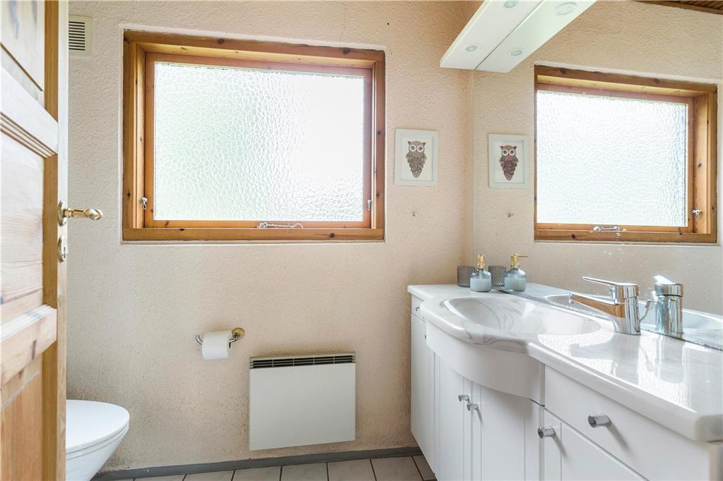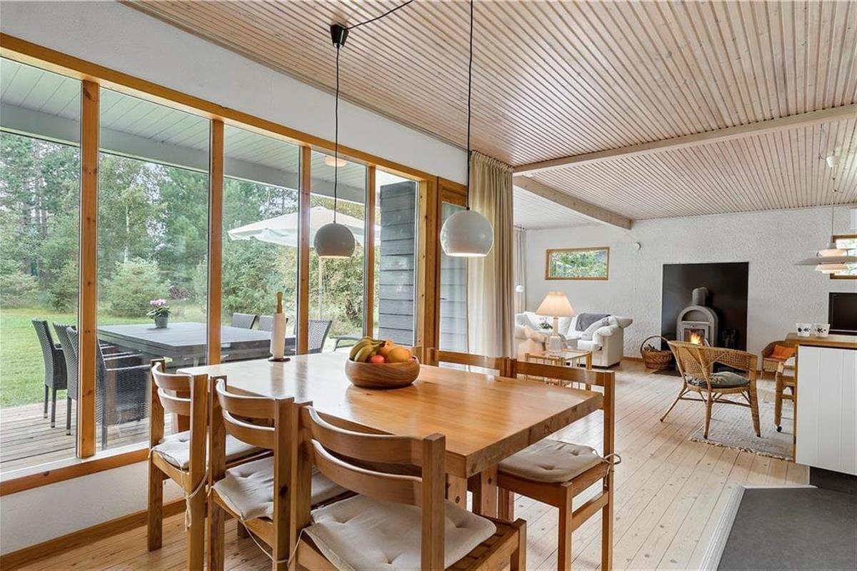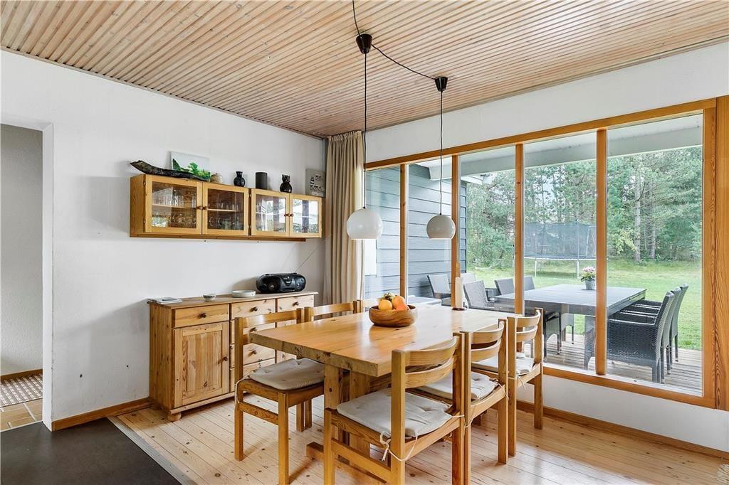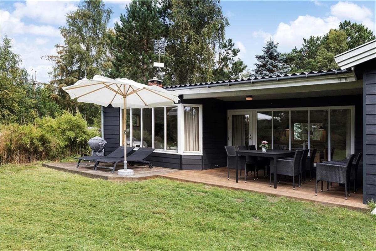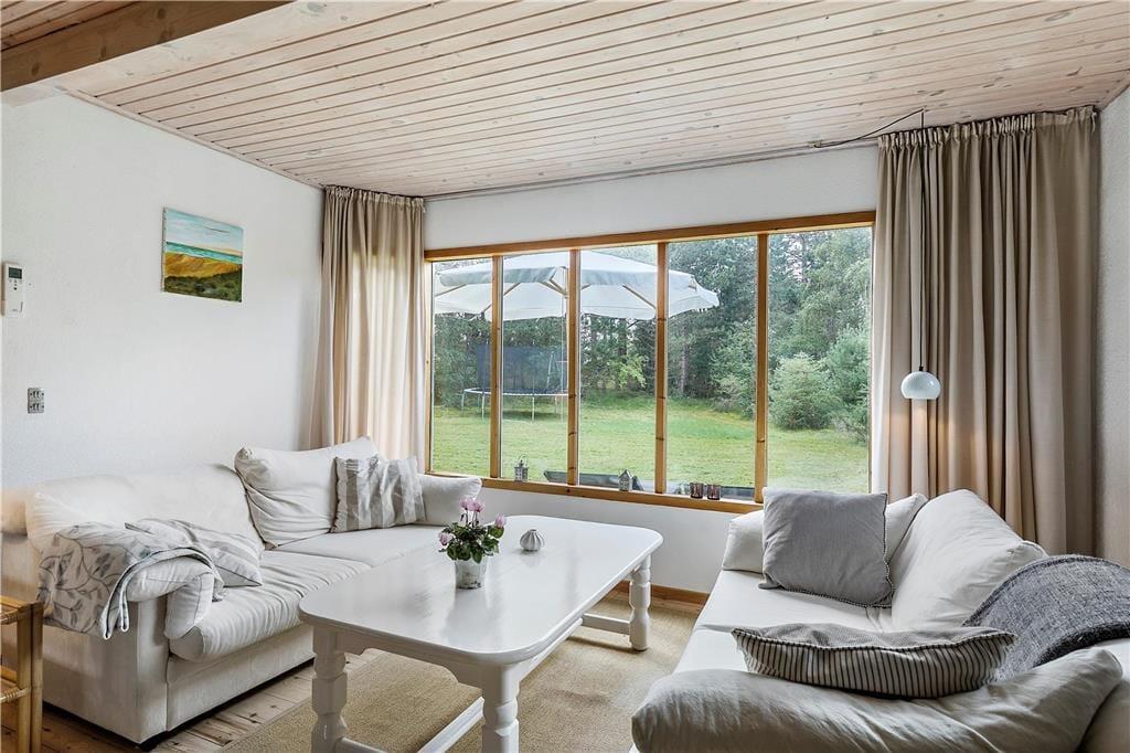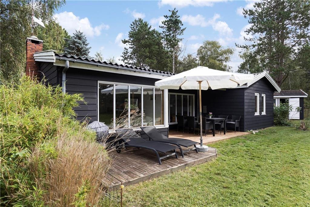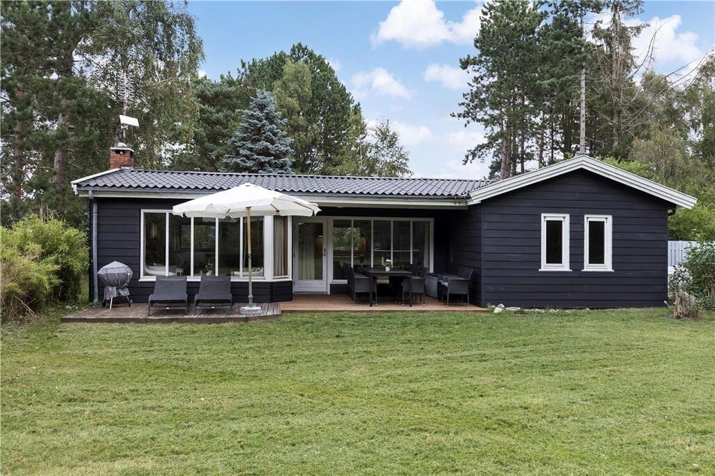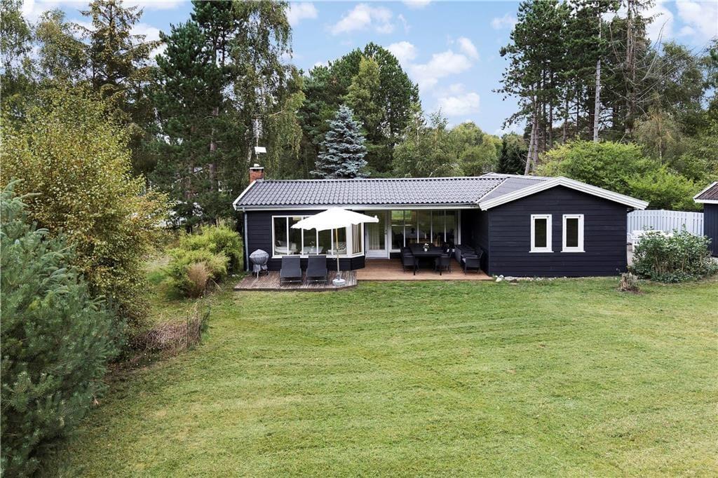 Der ansprechend lichte, ungestörte Garten ist von hohen Bäumen umgeben. Entlang der Südseite des Hauses erstreckt sich eine Terrasse. Gleiches gilt für eines der Hausenden. Den gesamten Tag hindurch wirst du somit problemlos ein sonniges Plätzchen an der frischen Seeluft finden. Deinen Liegestuhl kannst du alternativ auf der Rasenfläche aufstellen und dort im Schatten der Bäume ein erholsames Nickerchen halten. Der Garten lädt zum Spielen verschiedenster Outdoor-Spiele ein. Vergesst also nicht, euer Wikingerschach- oder Krocketspiel einzupacken. Deine Kinder dürfen sich auf eine Schaukel und auf ein Trampolin freuen. Für Abwechslung sorgen Abstecher an den schnell zu Fuß erreichbaren Strand, der mit gutem Badewasser und schönen Pfaden besticht, die entlang der Küste führen. Bei entsprechenden Windbedingungen ist es am Strand gut möglich, per SUP-Board oder per Surfbrett in See zu stechen.