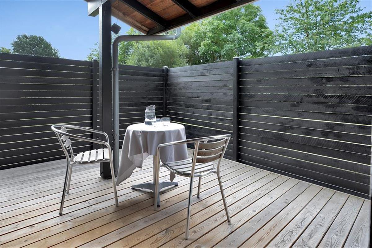 Im gemütlichen Wohnzimmer mit Schlafsofa können Sie sich mit einem guten Buch entspannen oder eine Partie Karten spielen. Zudem finden Sie hier eine offene Küche mit Geschirrspüler und Waschmaschine und einem guten Essbereich. Es gibt ein Badezimmer mit Dusche und 2 Schlafzimmer. Vom Wohnzimmer aus hat man Zugang zu einer herrlichen, großen Terrasse. Hier kann man von morgens bis abends die Sonne genießen, während man sich in ein interessantes Buch vertieft oder ein gutes Glas Wein trinkt.