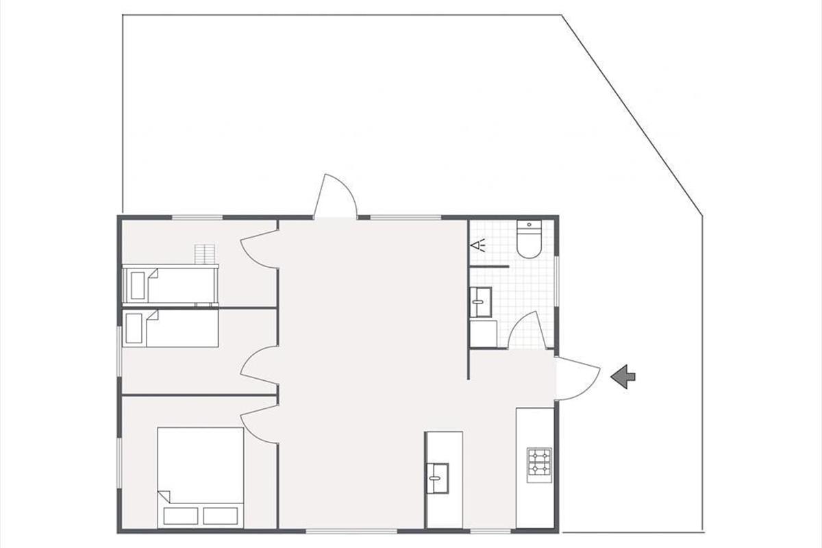 De woning heeft een oppervlakte van 60 m² en ligt op een 1.238 m² groot perceel, met o.a. een schommel, een zandbak, een speelhuis en een trampoline.