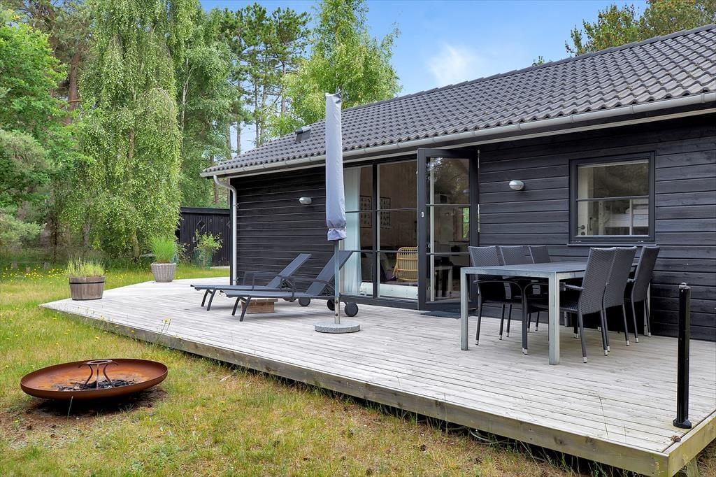 Gezellig vakantiehuis in Overby Lyng met tuin, speeltoestellen en dichtbij het strand.