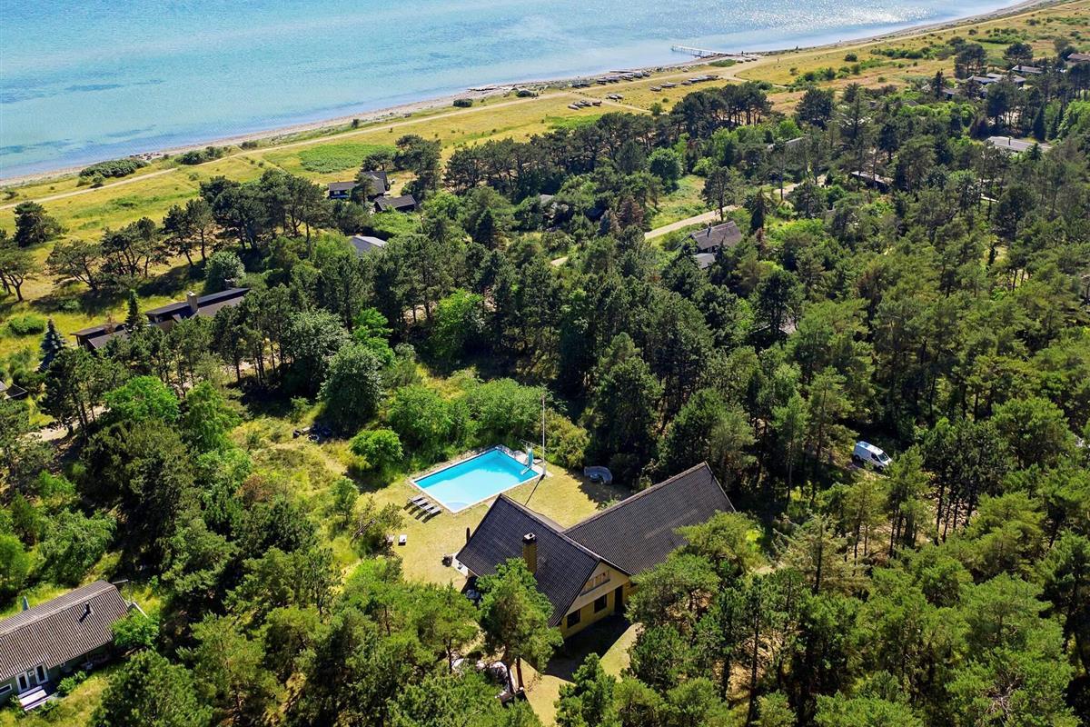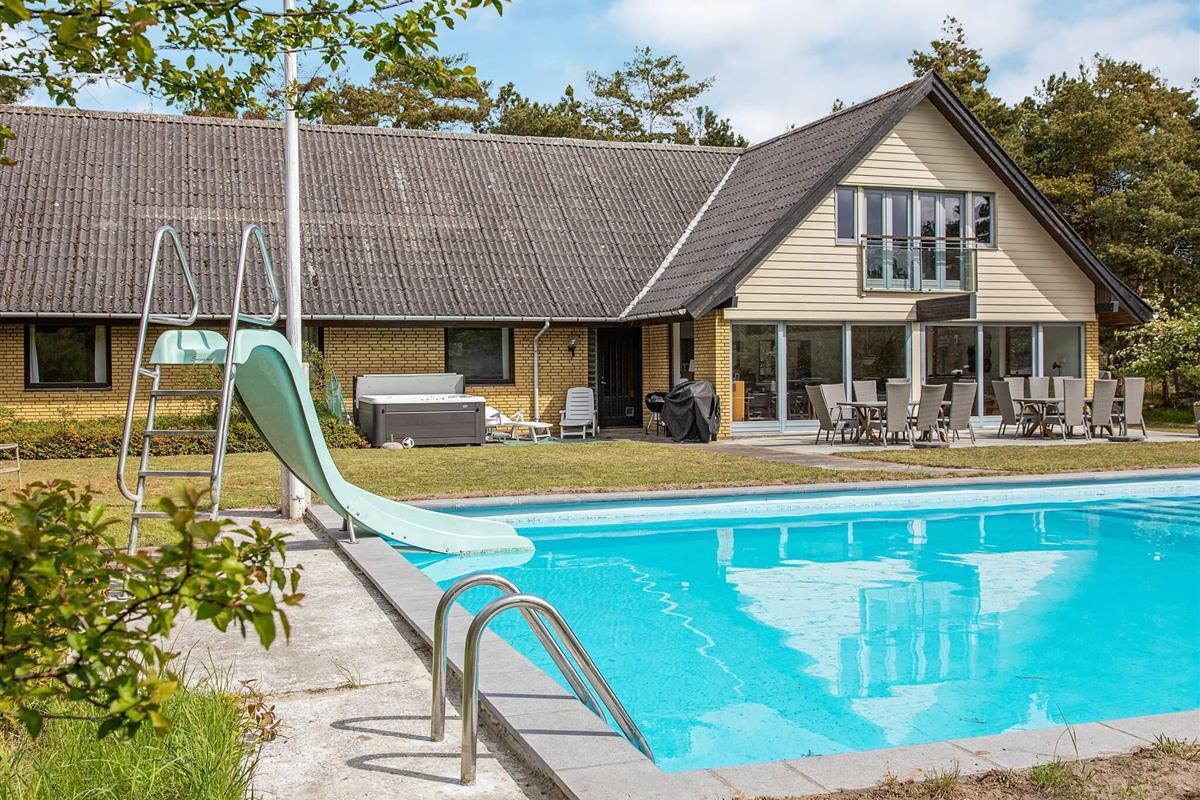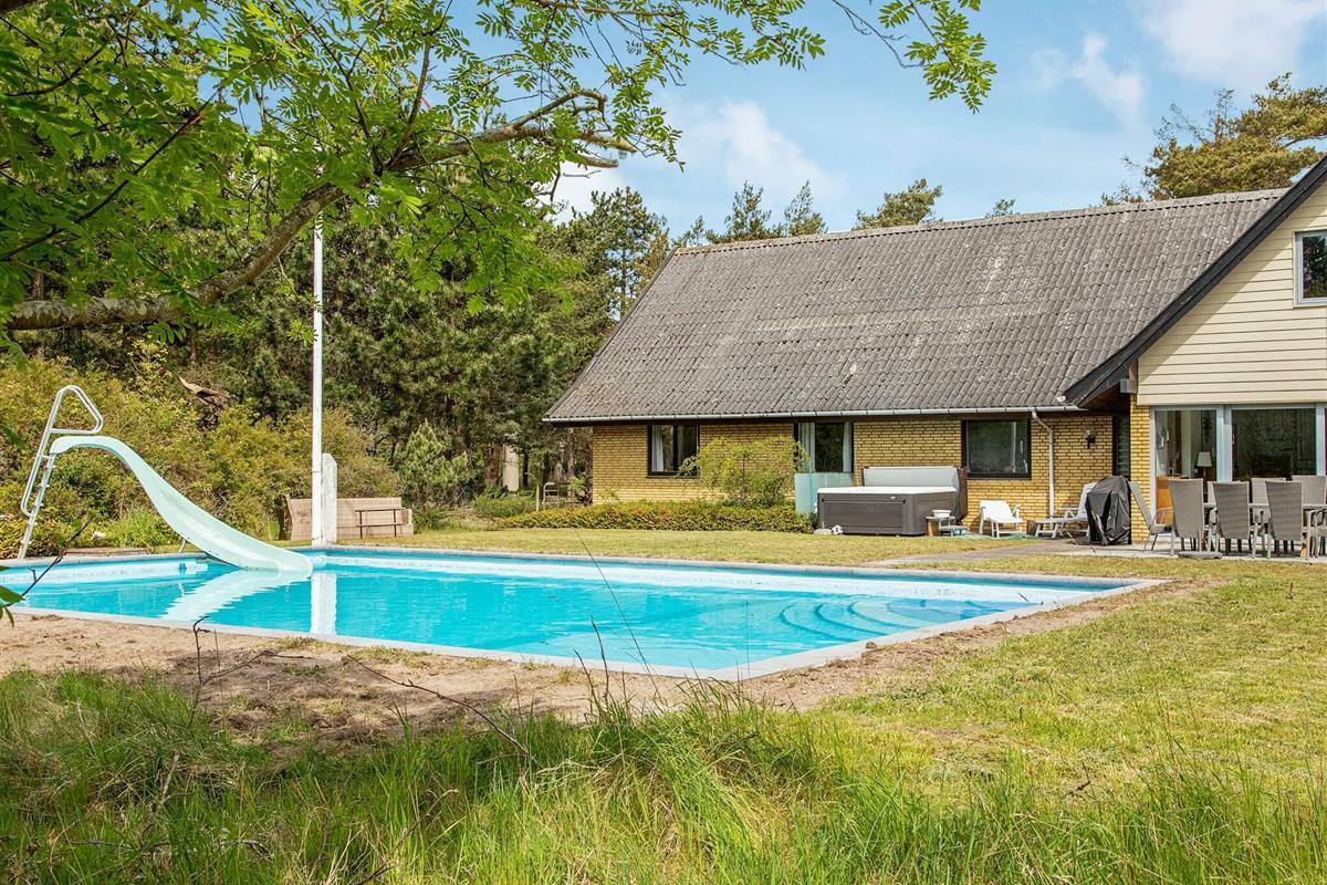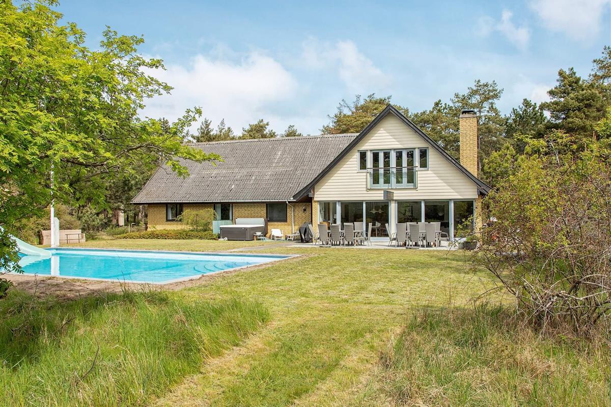 Auf einem attraktiven Naturgrundstück bei Overby Lyng erwartet Sie dieses familienfreundliche Ferienhaus mit Pool und Whirlpool im Außenbereich sowie schönem Ausblick zur Küste!