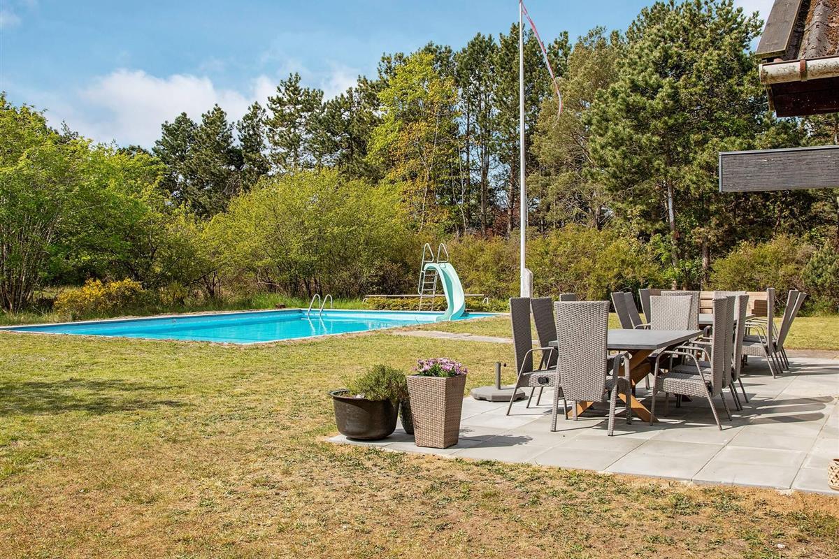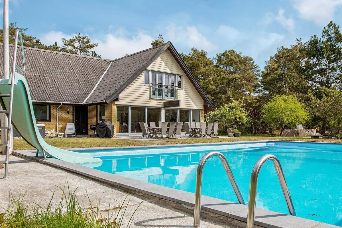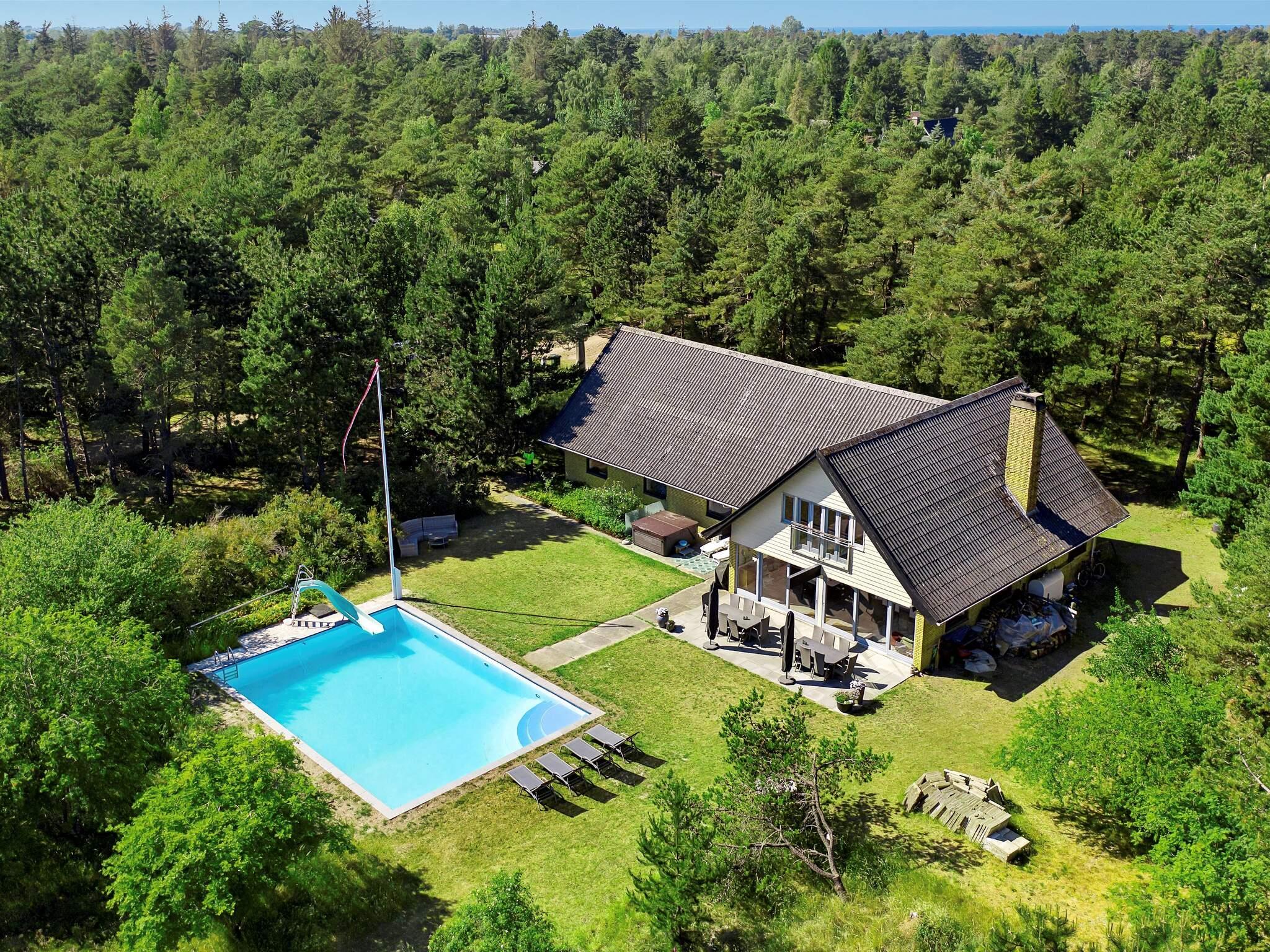Auf einem attraktiven Naturgrundstück bei Overby Lyng erwartet Sie dieses familienfreundliche Ferienhaus mit Pool und Whirlpool im Außenbereich sowie schönem Ausblick zur Küste!