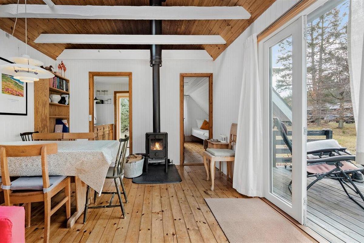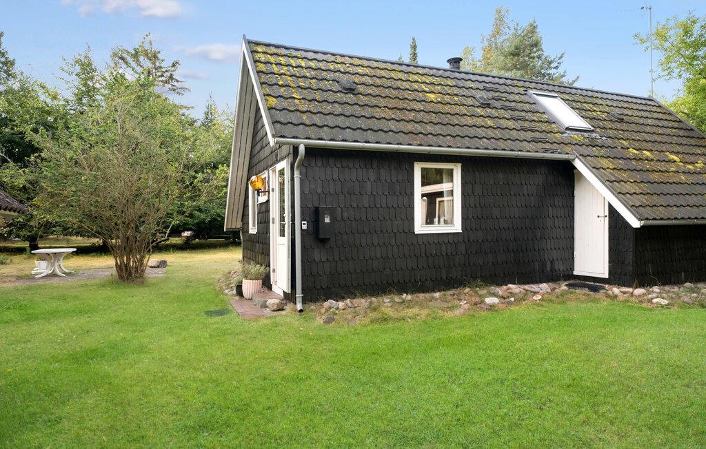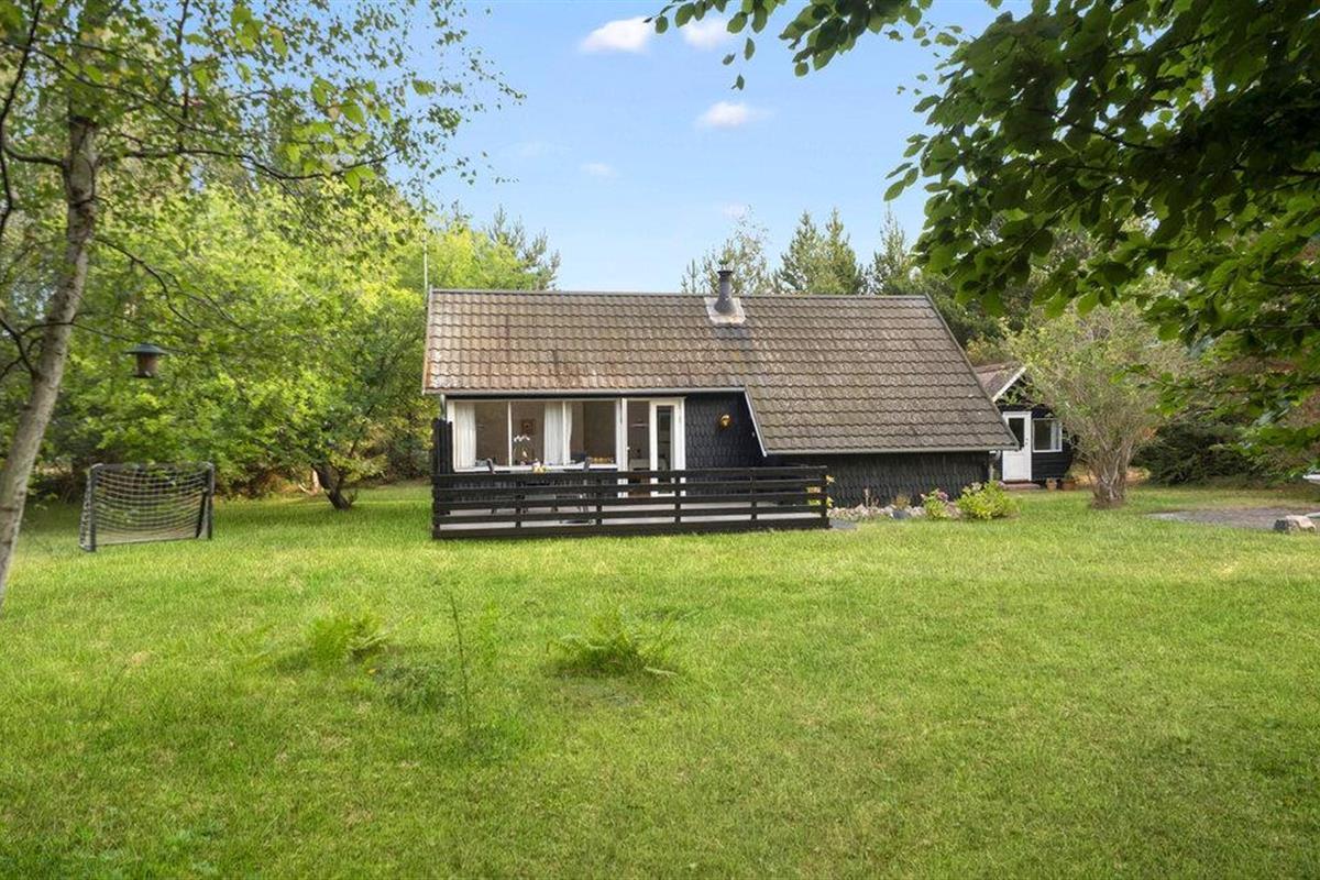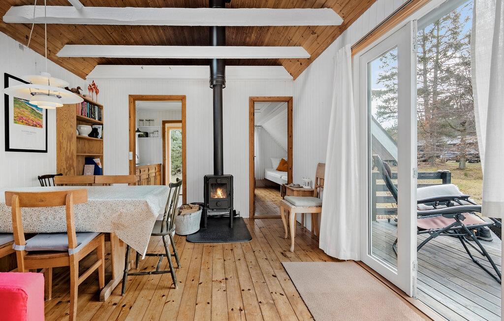 Ontdek dit charmante houten vakantiehuis met retro sfeer nabij Overby Lyng Strand, ideaal voor een ontspannen gezinsvakantie.