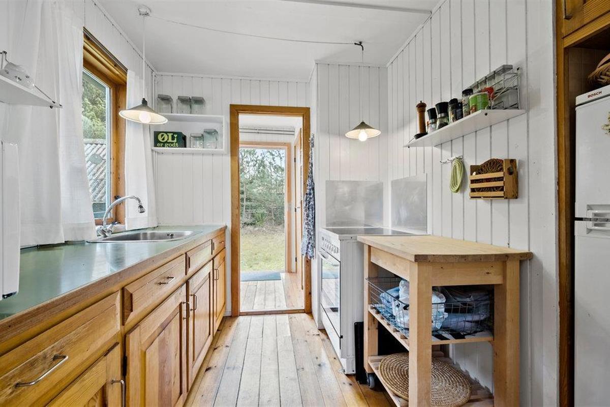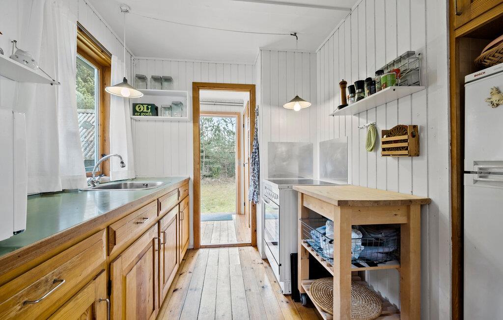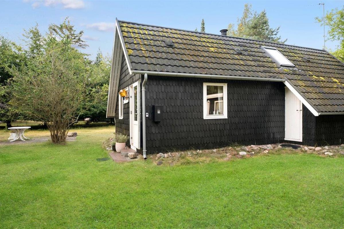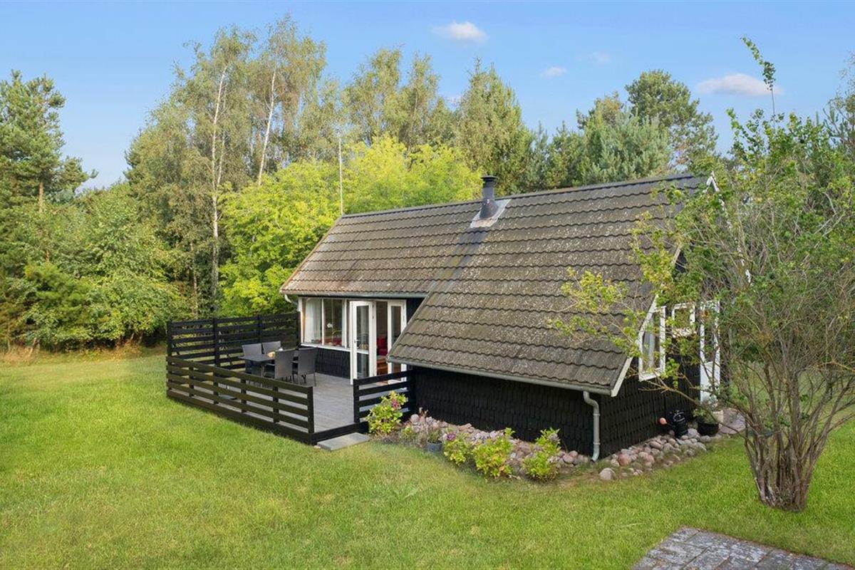 Ontdek dit charmante houten vakantiehuis met retro sfeer nabij Overby Lyng Strand, ideaal voor een ontspannen gezinsvakantie.