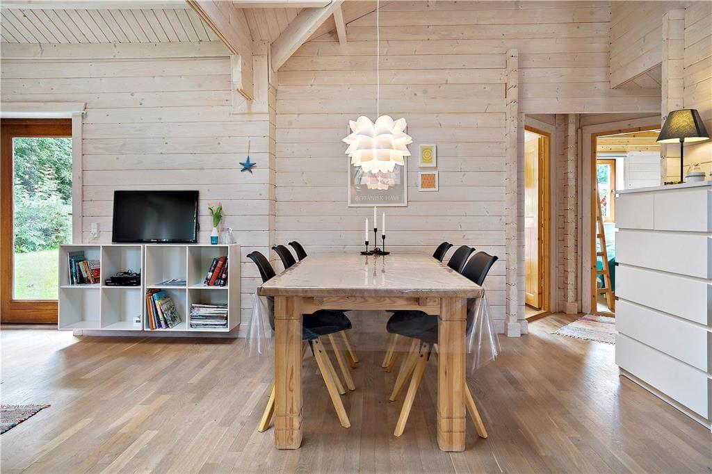 Im Inneren erwartet dich eine einladende Stimmung mit Platz für gemeinsames Zusammensein und stille Momente. Der Wintergarten wird schnell zum Mittelpunkt des Hauses. Hier kannst du den Morgen mit einer Tasse Kaffee beginnen, stricken, lesen oder einfach den Blick in die Natur schweifen lassen, während das Tageslicht sich verändert. Für zusätzliche Entspannung sorgt der Whirlpool, in dem du die Schultern sinken lassen und Ruhe spüren kannst. Küche und Wohnbereich gehen harmonisch ineinander über, sodass Mahlzeiten und Zusammensein auf natürliche Weise miteinander verbunden sind und ein angenehmer Ferienrhythmus entsteht.