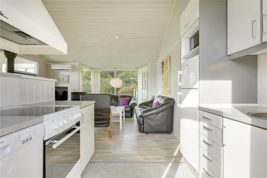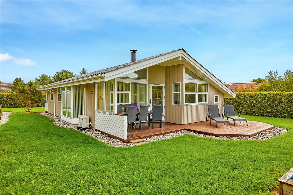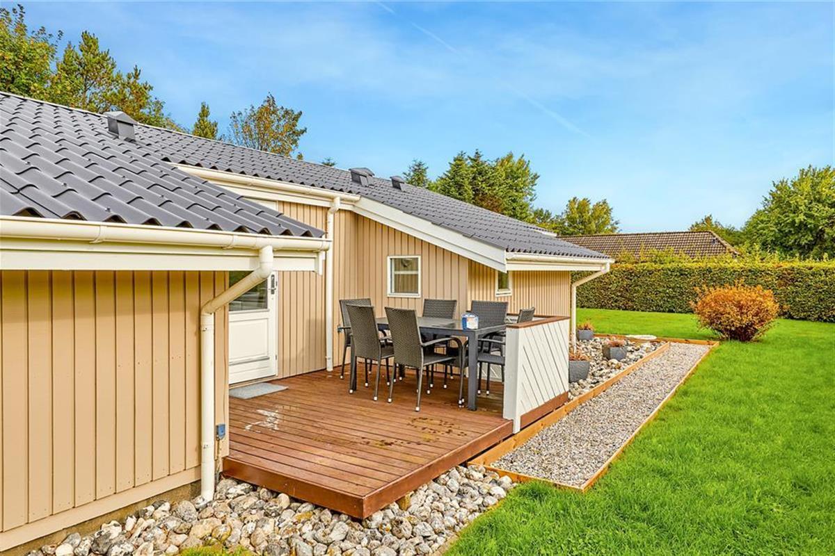 Dieses Ferienhaus liegt in Pøt Strandby. Die naturschöne Umgebung verspricht Erholung und Entspannung und lädt zu langen Spaziergängen ein. Innerhalb von fünf Gehminuten erreichen Sie den Badestrand. Der gemütliche Hafenort Juelsminde liegt nur zehn Autominuten entfernt. Hier können Sie im Hafen ein leckeres Eis genießen oder durch die gemütliche Fußgängerzone mit vielen kleinen Geschäften schlendern. Für Shoppingtouren oder Restaurantbesuche ist die Stadt Horsens zu empfehlen, die Sie innerhalb von zwanzig Minuten erreichen. Ihre Kinder werden sich über einen Ausflug in das Spieleland in Horsens, das Legoland oder den Givskud Zoo freuen.