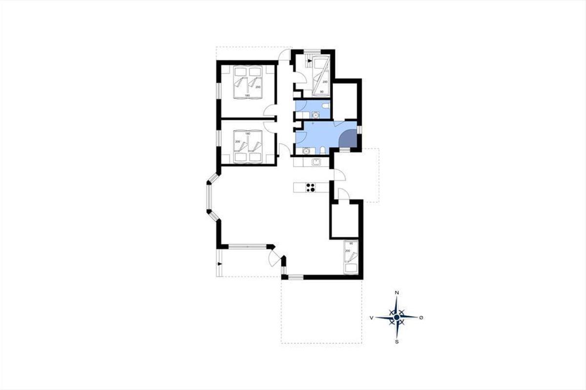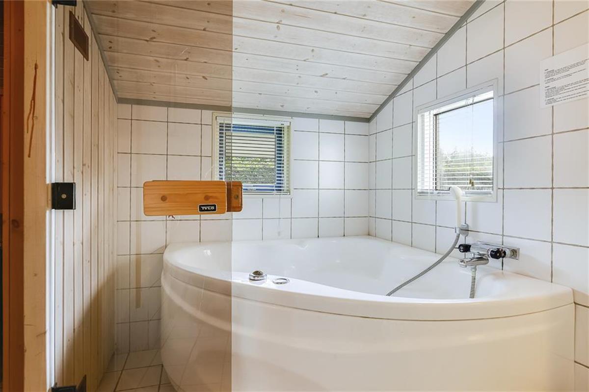 Dieses Ferienhaus eignet sich hervorragend für eine große oder für zwei befreundete Familien. Die acht Schlafplätze verteilen sich auf zwei Schlafzimmer mit je einem Doppelbett, ein Zimmer mit einem Etagenbett sowie eine Schlafnische mit Platz für zwei Personen. Der kombinierte Küchen- und Wohnbereich ist hell und geräumig. Die große Küche ist mit sämtlichen Annehmlichkeiten des modernen Lebens ausgestattet. Das Badezimmer verfügt über eine Toilette, eine Dusche, einen Whirlpool und eine Sauna. Im Haus befindet sich zudem eine separates Gäste-WC, in dem auch die Waschmaschine und der Trockner untergebracht sind. Für die kleinen Urlauber stehen ein Hochstuhl und ein Kinderbett bereit.