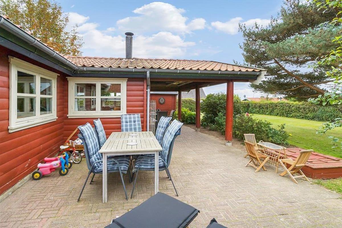 Wenn Sie und Ihre Familie mal so richtig in ruhiger Umgebung entspannen möchten, dann ist dieses Ferienhaus das richtige für Sie. Schon beim ersten Anblick dieses roten Blockhauses fährt man automatisch runter. Vom einladenden Eingangsbereich aus gelangen Sie zum Bad, das über eine Fußbodenheizung verfügt. Von dort aus geht auch das erste Zimmer mit zwei Einzelbetten ab. Geht man weiter, kommt man in die Küche/Mehrzweckraum mit Geschirrspüler, Mikrowelle, Kühl-Gefrierkombination, Herd und was man sonst so für den Urlaubsaufenthalt benötigt, außerdem einen Esstisch, an dem die ganze Familie Platz findet. Von der Küche aus geht es weiter in den Wohnbereich, ausgestattet mit Kaminofen, Fernseher mit sowohl dänischen und deutschen Sendern und einem gemütlichen Ecksofa. Vom Wohnzimmer aus gelangen Sie in die beiden anderen Schlafzimmer des Hauses, wovon eines mit Doppelbett und das andere mit zwei Einzelbetten ausgestattet ist. Vom Wohnzimmer aus geht es auch auf die überdachte Terrasse hinaus. Für die kleinen Gäste stehen ein Kinderbettchen und ein Hochstuhl zur Verfügung. Auch Hunde sind hier sehr willkommen.