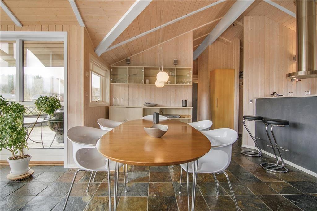 Wir heißen Sie in diesem geräumigen und gut gepflegten Ferienhaus in Pøt Strandby willkommen. Es umfasst 97 m² Wohnfläche und einen Schlafboden. Das Herz des Hauses ist der große Wohnraum mit integrierter Küche, in dem Sie Platz für die ganze Familie finden. Die großen Fensterfronten lassen viel Tageslicht herein und machen den Wohnraum zu einem wunderbaren Aufenthaltsort.