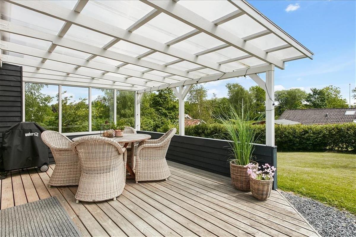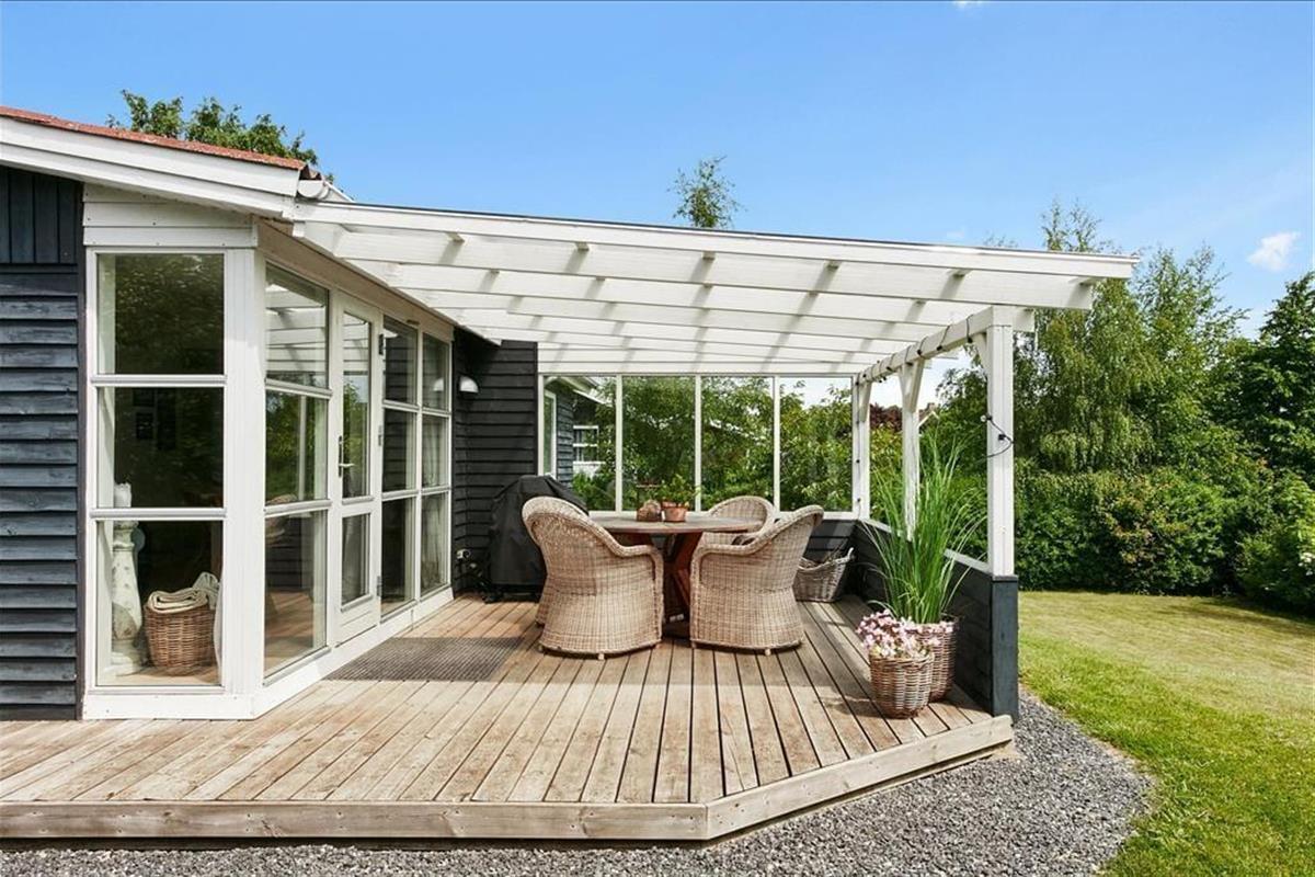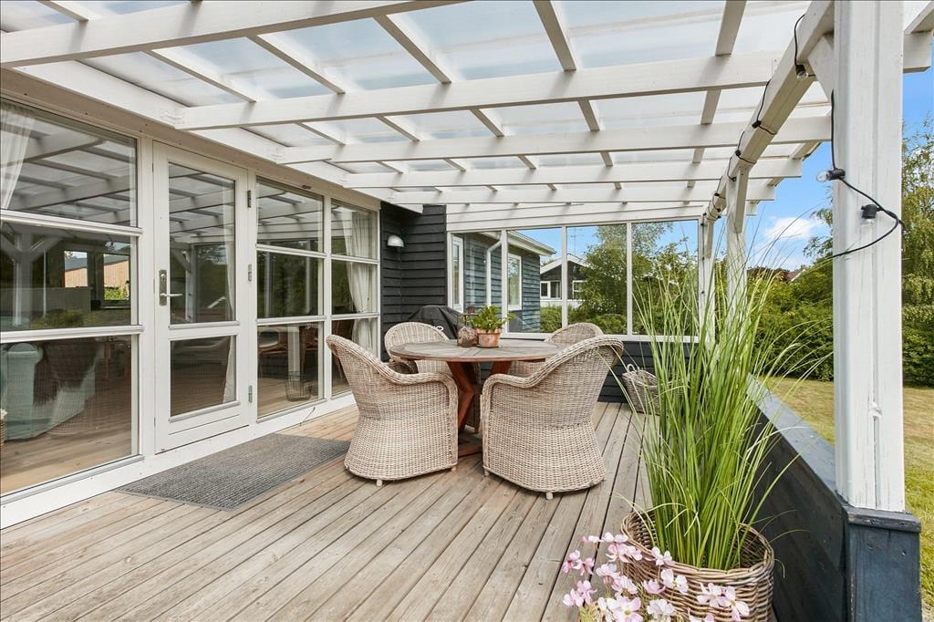 Das Ferienhaus ruht ansprechend platziert auf einem schönen Grundstück. An den meisten Stellen rund um das Haus halten Sie sich völlig ungestört auf. Die Terrassen, bei denen es sich um offene und überdachte Terrassenareale handelt, werden schnell zu Ihren bevorzugten Aufenthaltsplätzen avancieren. Hier können Sie in geselliger Runde die Mahlzeiten genießen, Gesellschaftsspiele spielen und sich bestens erholen. Zahlreiche schöne Gartenmöbel, Loungemöbel, ein Sonnenschirm und ein Weber grill laden zu herrlichen Stunden unter dem hohen, nordischen Himmel ein.