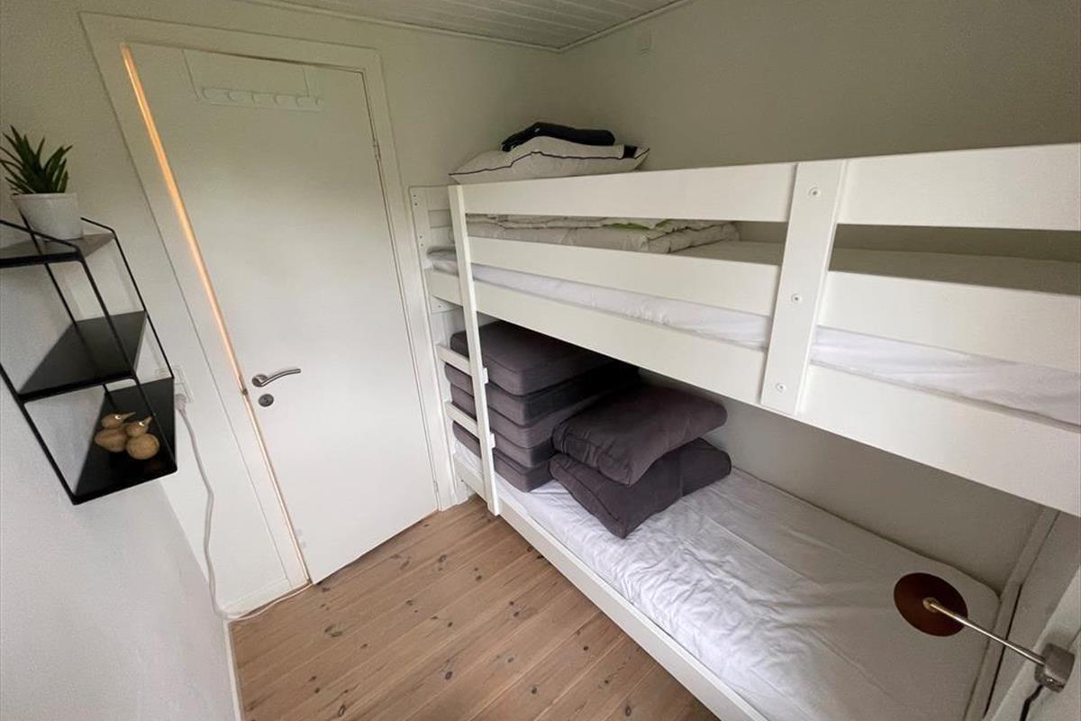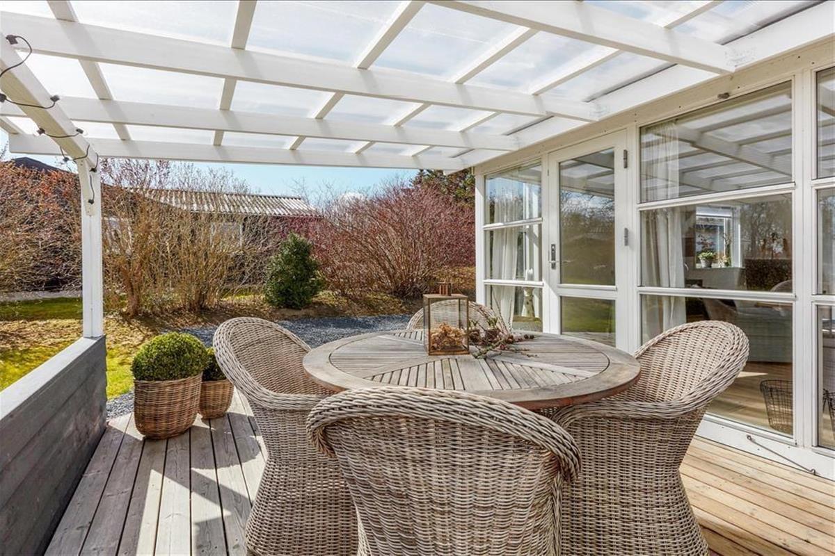 Herzlich willkommen in diesem außergewöhnlich gemütlichen Ferienhaus, das unter anderem mit seiner guten Lage im beliebten Ferienhausgebiet Pøt Strandby zu überzeugen weiß. Das Urlaubsdomizil begeistert mit echtem "Ferienhauscharme" und bietet Ihnen einen idealen Rahmen für schöne, erholsame Urlaubstage im Familien- oder Freundeskreis. Das Haus beherbergt drei Schlafzimmer und eignet sich daher sehr gut für 4 Erwachsene und 2 Kinder, die sich auf zwei Schlafzimmer mit je einem guten Doppelbett mit Boxmatratzen und auf einen Schlafraum mit einem schönen Etagenbett verteilen können. Das Herzstück des Hauses bildet der direkt mit dem Wohnraum verbundene Küchen- und Essbereich. Die Küche beinhaltet alles, was Sie während Ihres Aufenthalts benötigen, inklusive eines Geschirrspülers. In direkter Verbindung zur Küche liegt der Wohnraum, der ausreichend Platz für alle Mitreisenden bietet. Hier können Sie mit Ihrer Familie am Esstisch wunderbar die Mahlzeiten genießen und sich anschließend in aller Gemütlichkeit auf dem Sofa niederlassen. Für Unterhaltung und Abwechslung sorgt dabei ein Fernseher mit dänischen, deutschen, schwedischen und norwegischen Sendern. Zudem können Sie über Ihr eigenes Streaming-Abo Internetinhalte, Serien und Filme via Apple TV oder Chromecast auf den Fernseher streamen.