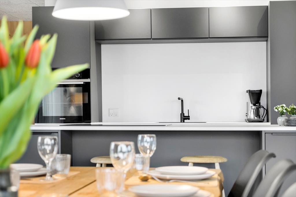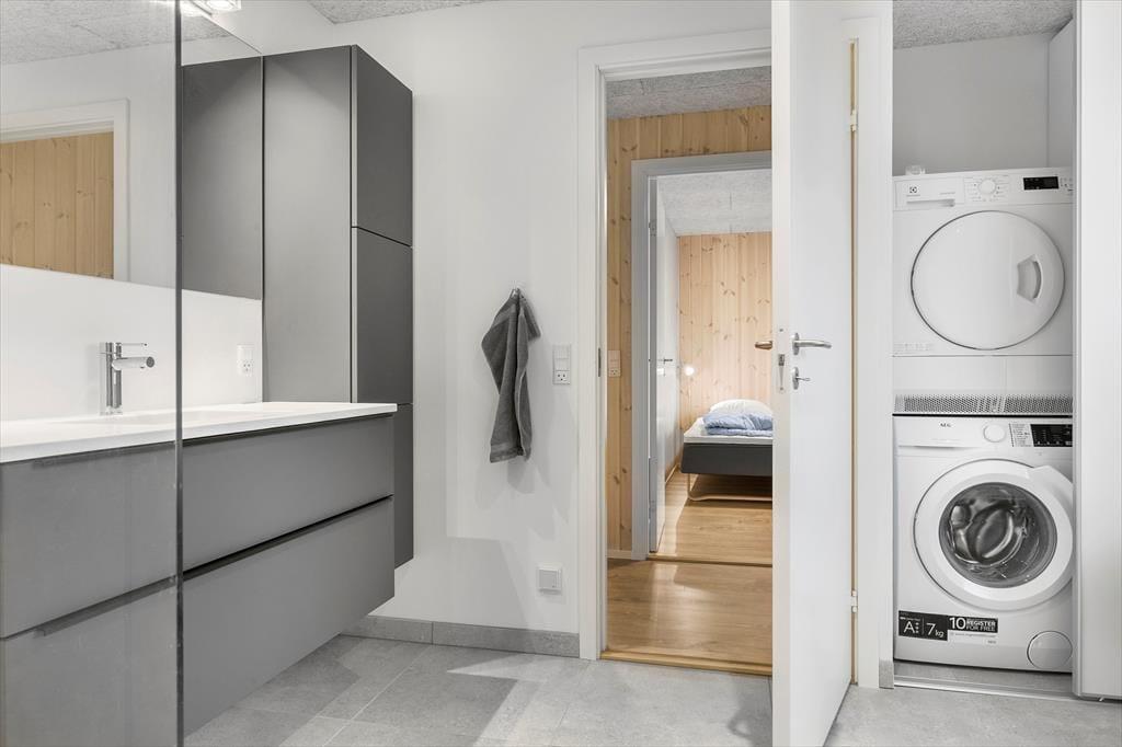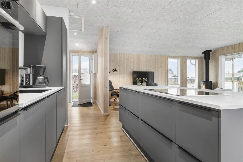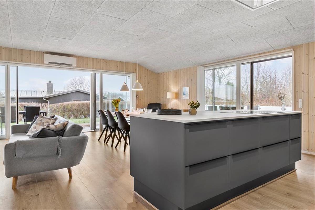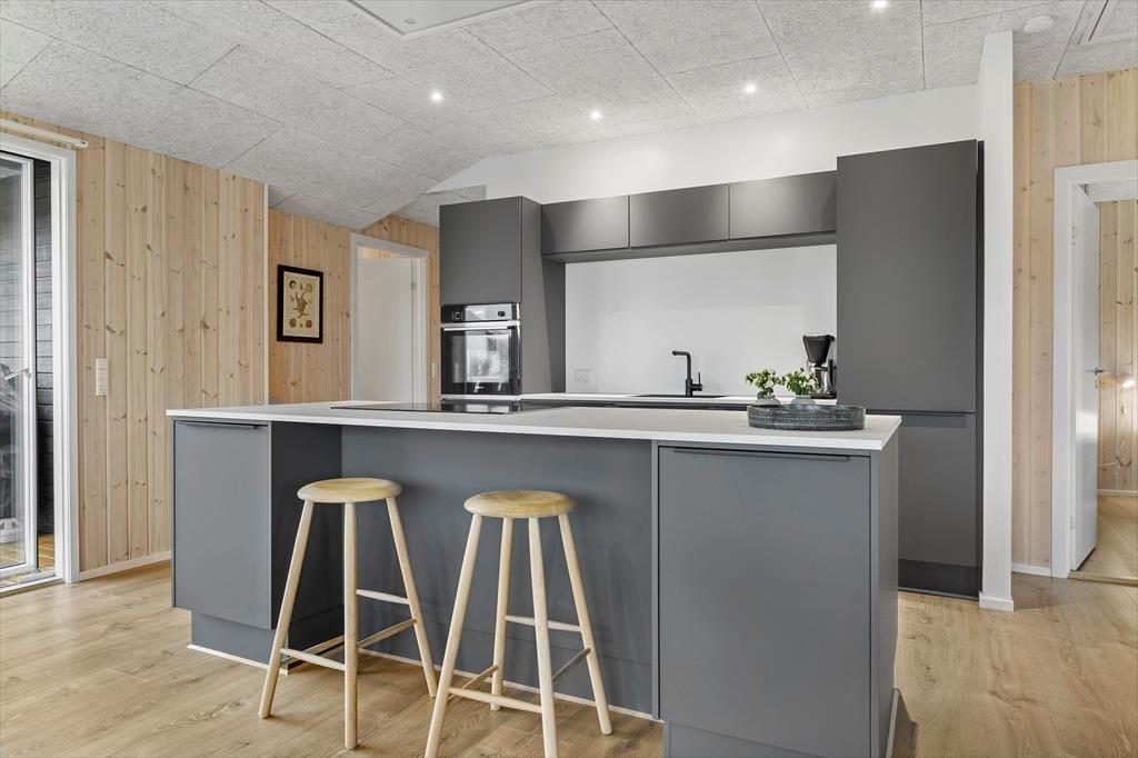 Willkommen in diesem umfassend renovierten Ferienhaus, das nur 250 Meter abseits des Strandes liegt. Das Haus präsentiert sich nahezu neuwertig und bietet mit seinen drei guten Schlafräumen Platz für 6 Personen. Alle Schlafräume verfügen über je ein Doppelbett. Einer der Räume beinhaltet einen eigenen Fernseher mit Fernsehsendern und Chromecast. Das Herzstück des Hauses bildet die ansprechende, offene Küche, die alles beinhaltet, was Sie während Ihres Urlaubs benötigen. Die Küche verfügt unter anderem über einen Geschirrspüler, eine Mikrowelle, einen Wasserkocher, eine Kaffeemaschine, ein Kochfeld, einen Backofen und einen Kühlschrank mit Gefriermöglichkeit. An die Küche grenzt der groß und, offene Wohnraum, was sehr viel Platz für das Beisammensein bietet. Für Unterhaltung sorgt der Fernseher, der dänische, deutsche, norwegische und schwedische Sender empfängt und mit Chromecast zum Streamen Ihrer abonnierten Streamingdienste ausgestattet ist.