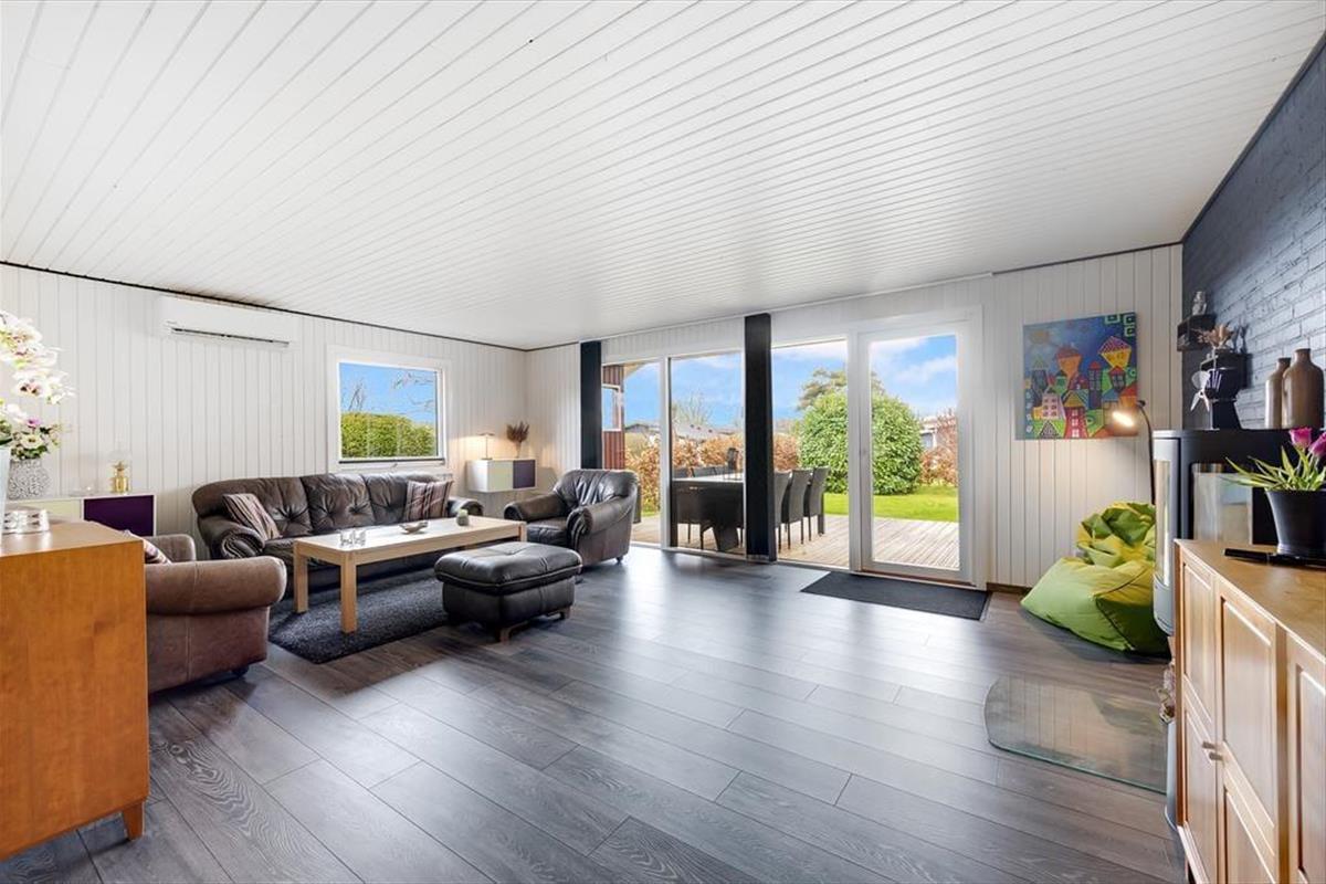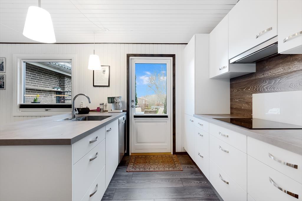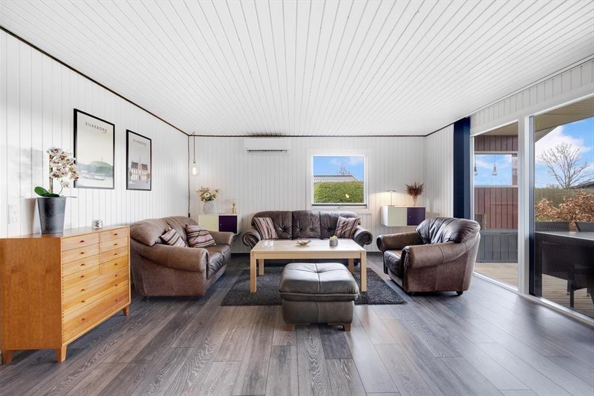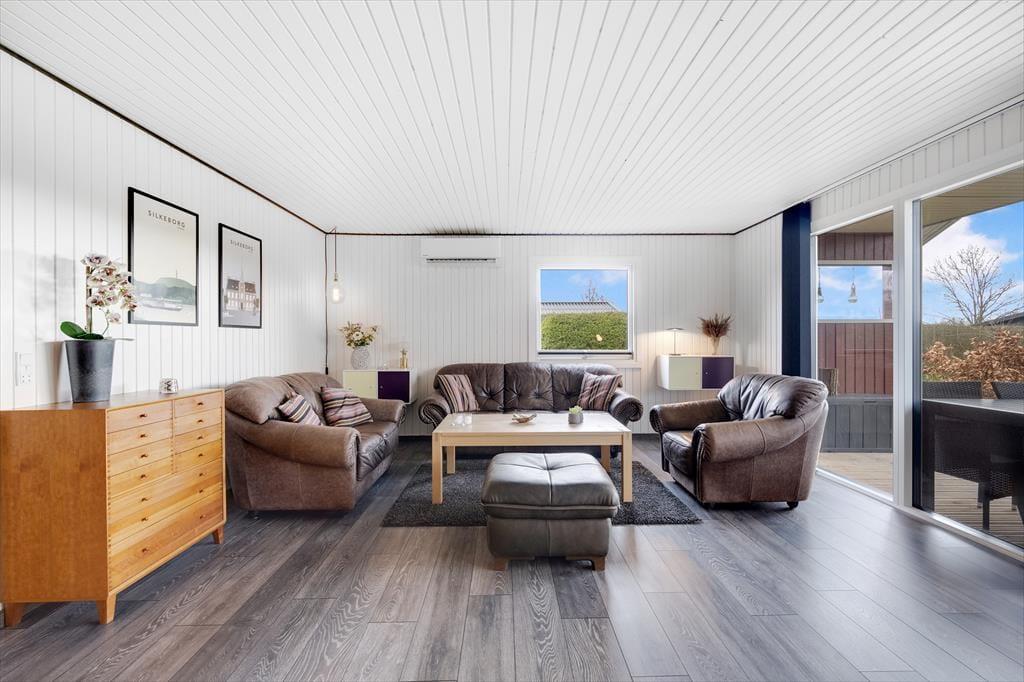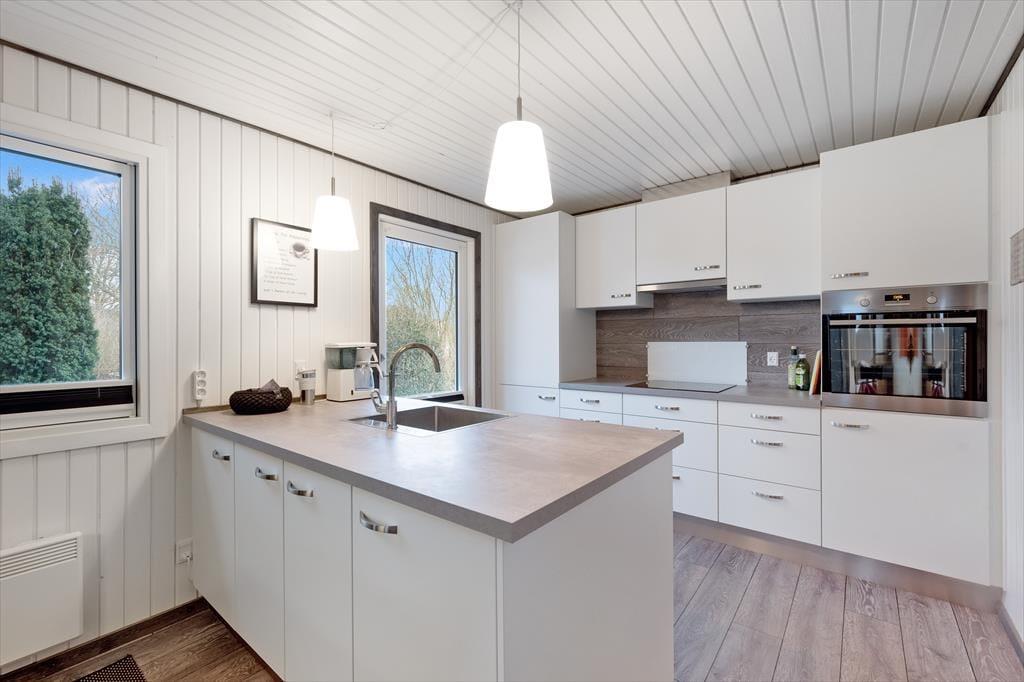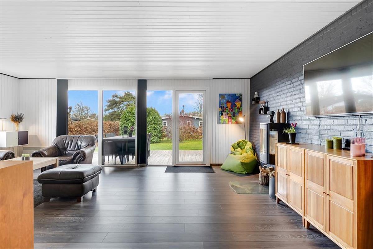 Das Ferienhaus ist hell und freundlich und bietet viel Platz. Es ist modern und hat eine gute Aufteilung mit allen notwendigen Notwendigkeiten für einen guten Urlaub. Das Haus hat ein großes und gemütliches Wohnzimmer mit Platz für die ganze Familie. Darüber hinaus gibt es einen Holzofen, der an kühlen Abenden für Wärme und eine gemütliche Atmosphäre sorgt. In der Verlängerung des Wohnzimmers befindet sich ein großes Familienzimmer mit einem großen Esstisch, an dem alle gemeinsam ihre Mahlzeiten genießen können. Die offene, helle Küche mit Blick auf das Wohnzimmer ermöglicht es allen, Zeit miteinander zu verbringen, sei es beim Kochen, Essen, Spielen usw.