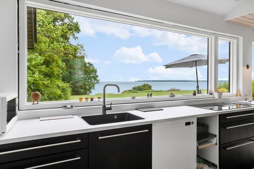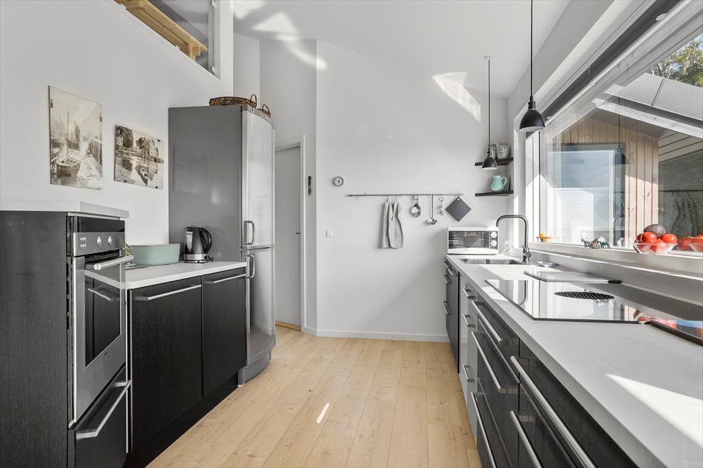 Dieses Ferienhaus ist der Inbegriff eines echten Ferienhausidylls. Die großen Fensterpartien auf der Wasserseite eröffnen prachtvolle Ausblick auf das endlose Blau und bedingen zugleich den gesamten Tag über einen reizvollen Tageslichteinfall. Ein Ferienhaus mit so spektakulärerer Aussicht dürfte ansonsten schwer zu finden sein. Selbst die Mahlzeiten im Kreise deiner Lieben stehen ganz im Zeichen des Panoramaausblicks. Bei diesem fantastischen Mietobjekt spürst du förmlich, wie sich der Ausblick, die Ruhe und die Stimmung zu etwas ganz Besonderem vereinen. An dein Ferienhaus schließt eine herrliche Terrasse mit Panoramaaussicht. Nachdem du nach einer erholsamen Nacht aufgewacht bist, kannst du auf die Terrasse hinaustreten, deinen Blick über das Wasser wandern lassen und die umliegenden Natur genießen.