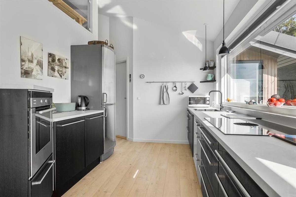 Dein Ferienhaus bietet viel Platz für das wertvolle Beisammensein. Ihr könnt nach Herzenslust zusammen spielen und lange Stunden mit angeregten Gesprächen genießen. Schöne Rückzugmöglichkeiten für ruhige Momente sind ebenfalls vorhanden. Wohnraum und Küche fügen sich zum Herzstück des Hauses, dem Aufenthaltsraum, zusammen. In der offenen, funktionellen Küche wird die Zubereitung der täglichen Mahlzeiten nicht nur Dank des herrlichen Panoramaausblicks zum reinsten Vergnügen. Dank der offenen Wohnfläche genießt du selbst während des Kochens, die Nähe deiner Lieben, die sich im Wohnraum beschäftigen. Der Esstisch, der sich in Verlängerung der Küche befindet, lädt nicht nur zum gemeinsamen Essen, sondern auch zu stimmungsvollen Spieleabenden ein. Der Essbereich und der hintere Teil des Wohnraums verwöhnen mit direktem Zugang zur Terrasse, sodass du die Mahlzeiten an schönen Tagen ohne Weiteres unter freiem Himmel servieren kannst.