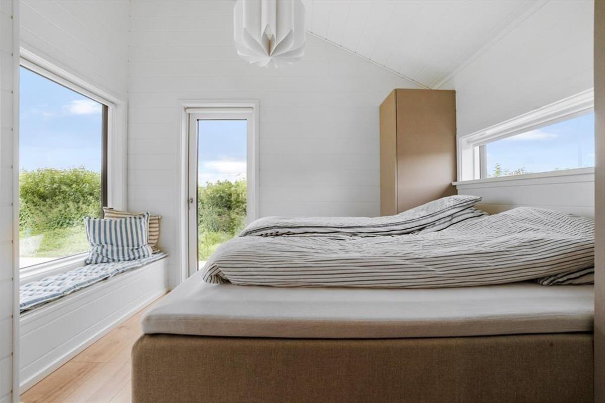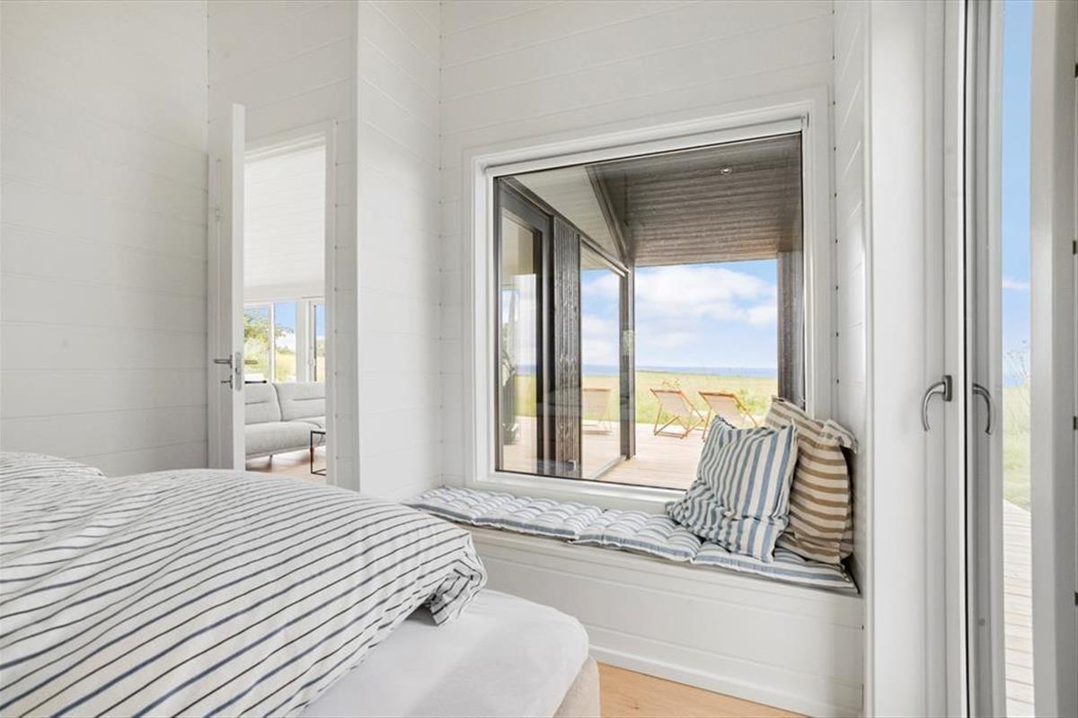 Dette sommerhus er symbolet på sommerhusidyl. Det store vinduesparti åbner sig op mod det endeløse blå hav og sollyset inviteres indenfor hele dagen. Du får ikke en mere spektakulær udsigt end denne. Forestil dig at nyde måltider sammen med dine nærmeste med panoramaudsigten ud over det glitrende vand og oplev hvordan stemningen og roen forenes i et.