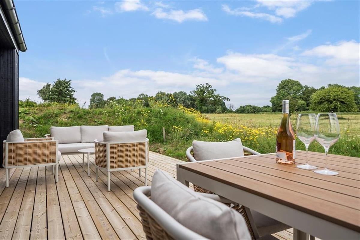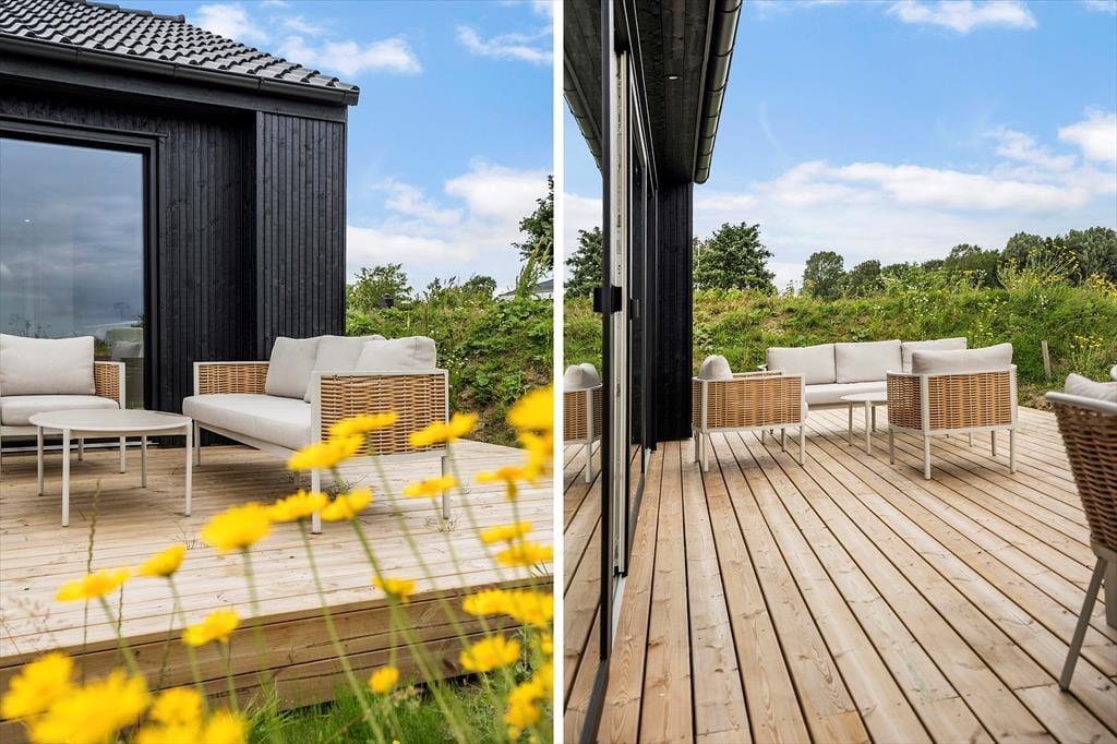 Terrassen er hjertet af udelivet ved dette sommerhus, den emmer af dansk sommer og ferieglæde. Her kan du lade dig fortrylle fra duften af grillet mad og dele dagens oplevelser med dine nærmeste, alt imens I nyder den smukke udsigt. Det er næsten umuligt ikke at lade sig distrahere af denne fantastiske atmosfære. Mærk stemningen og nærværet, mens solen langsomt forsvinder i horisonten og roen sænker sig omkring dig.