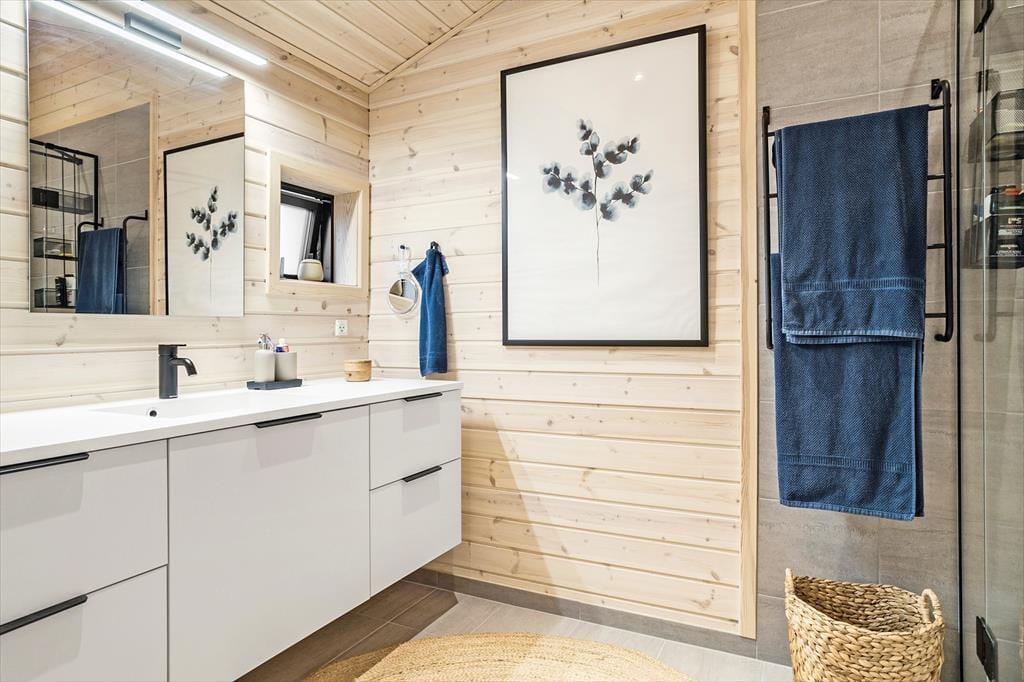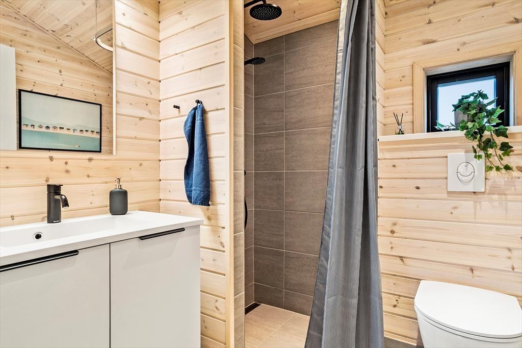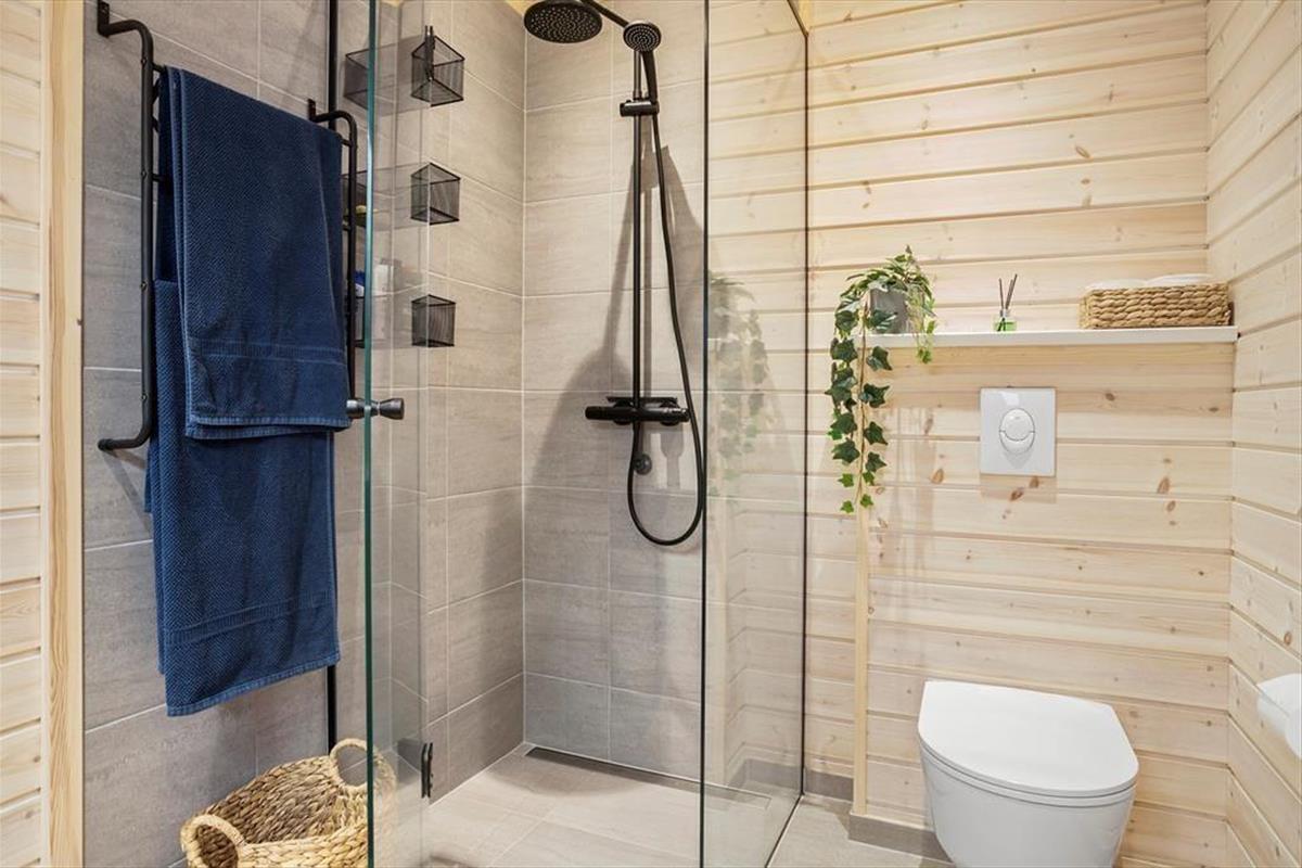 Das Ferienhaus verfügt über zwei gute Badezimmer, beide mit Toilette und Dusche. In einem der Badezimmer findet ihr auch eine Waschmaschine.