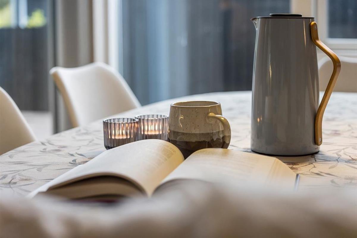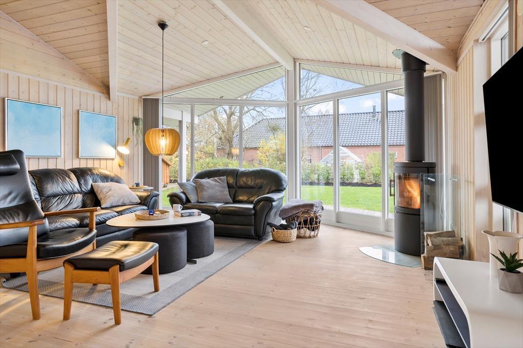 Direkt an die Küche schließt sich das geräumige Wohnzimmer an, in dem alle Platz finden. Hier kann die Familie gemeinsame Mahlzeiten am Esstisch genießen und anschließend auf dem Sofa vor dem Fernseher entspannen. Der TV bietet dänische, deutsche, schwedische und norwegische Kanäle. Zudem können Sie eigene Streaming-Dienste wie Netflix über die Apps des Fernsehers nutzen. Im gesamten Ferienhaus steht kostenloses WLAN zur Verfügung.