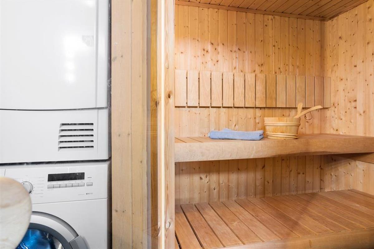 Das Ferienhaus verfügt über ein schönes Badezimmer mit Sauna sowie ein zusätzliches Gäste-WC. Im Hauptbadezimmer stehen außerdem eine Waschmaschine und ein Trockner zur Verfügung.