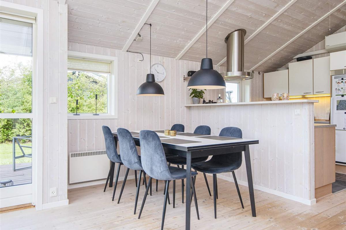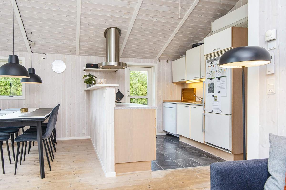 Dieses gut durchdachte Ferienhaus in Pøt Strandby bietet ein helles, geräumiges Ambiente für ein Familienleben, nur 10 Autominuten von der charmanten Hafenstadt Juelsminde entfernt. Die offene Wohnküche lädt zum gemeinsamen Kochen, Essen und Entspannen ein. Ein gemütlicher Holzofen und eine klimafreundliche Wärmepumpe sorgen an kühleren Tagen für Behaglichkeit. TV mit Chromecast zum Streamen. Vom Wohnbereich aus gelangt man hinaus auf eine große Terrasse, die ideal zum Sonnenbaden oder für Mahlzeiten im Freien ist. Holzkohle ist nicht inbegriffen.